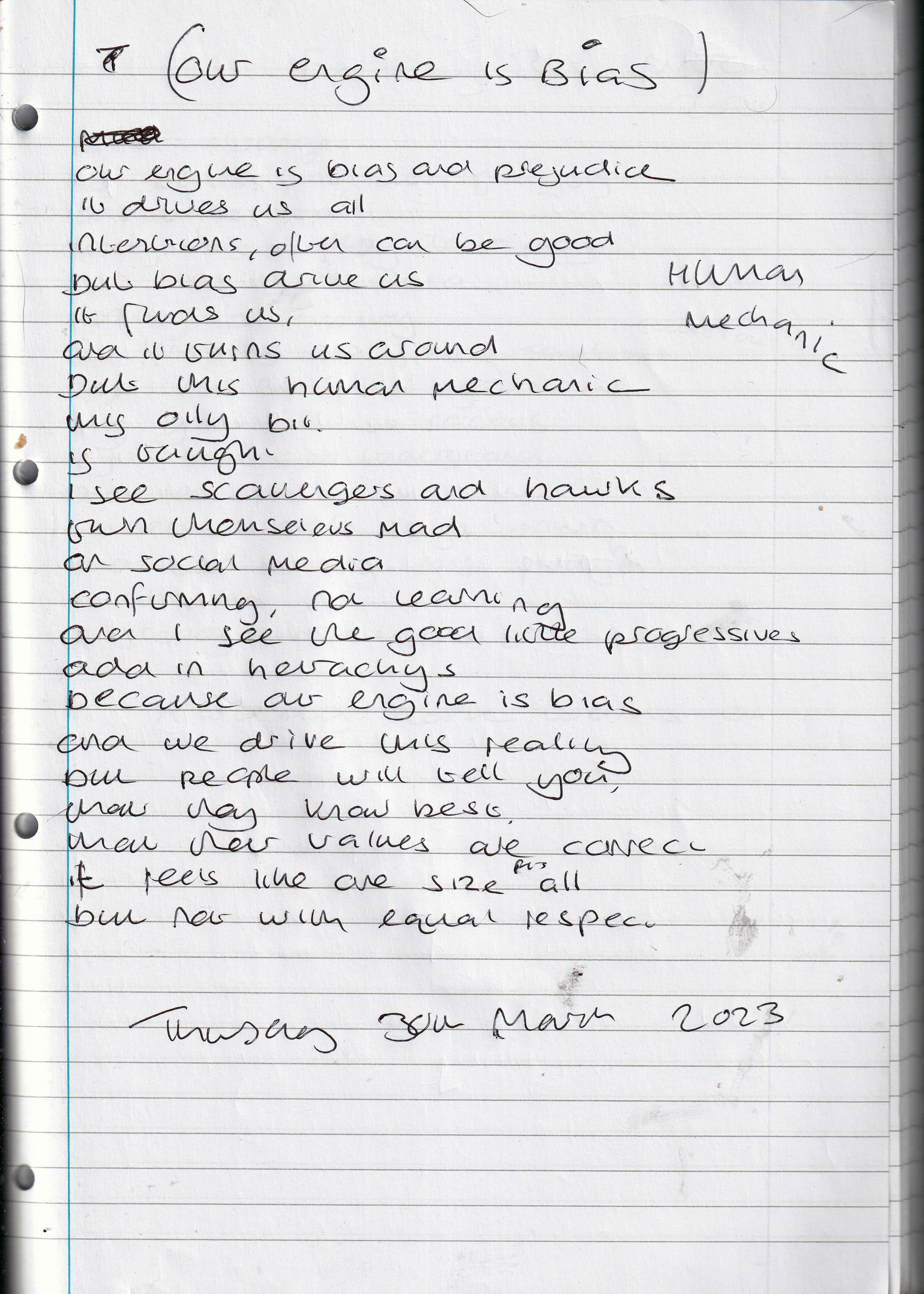 Human Mechanic – Written Tuesday 30th March 2023 (Aged 48)