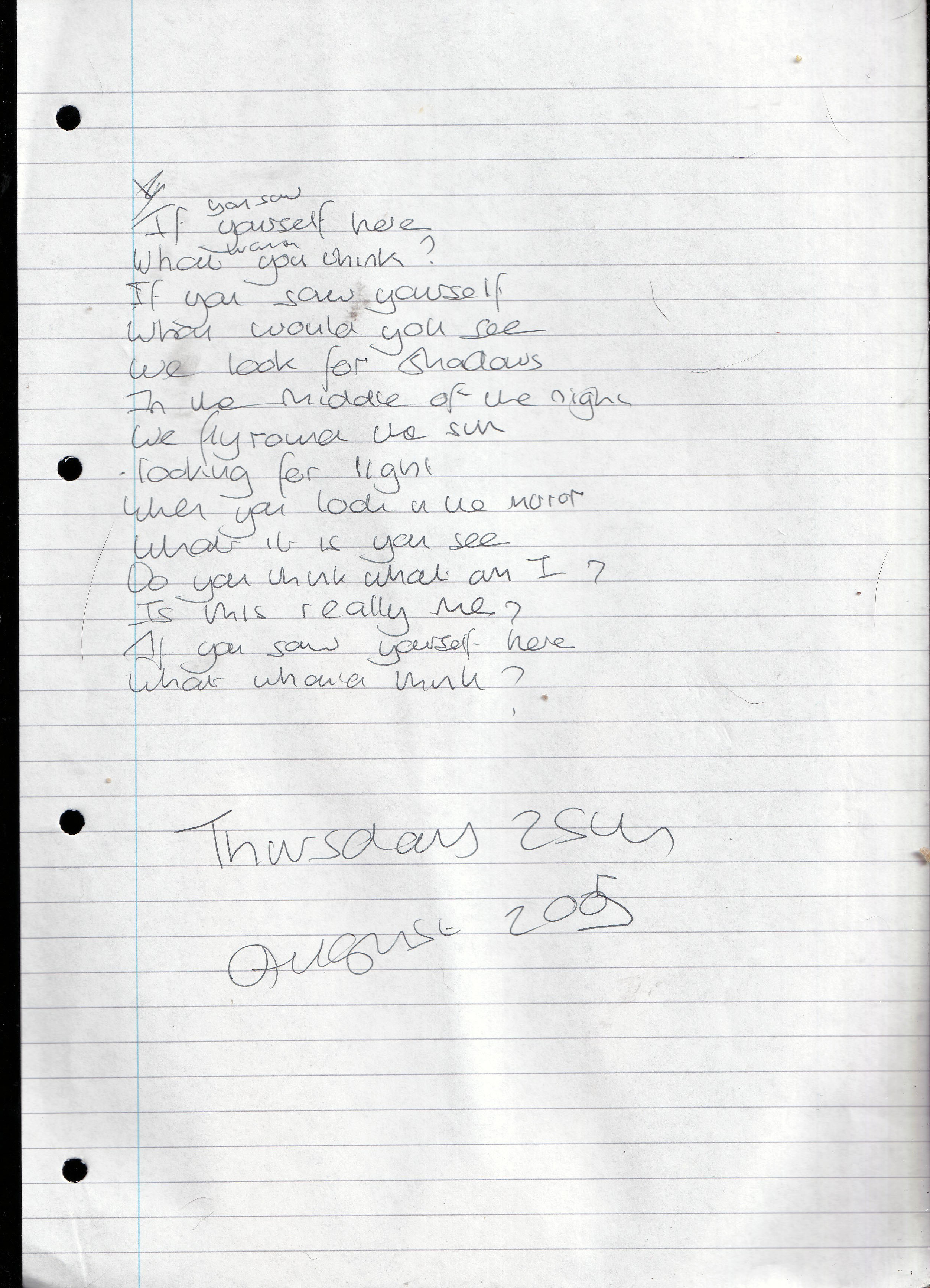 Shadows – Written Thursday 25th August 2005 (Aged 30)