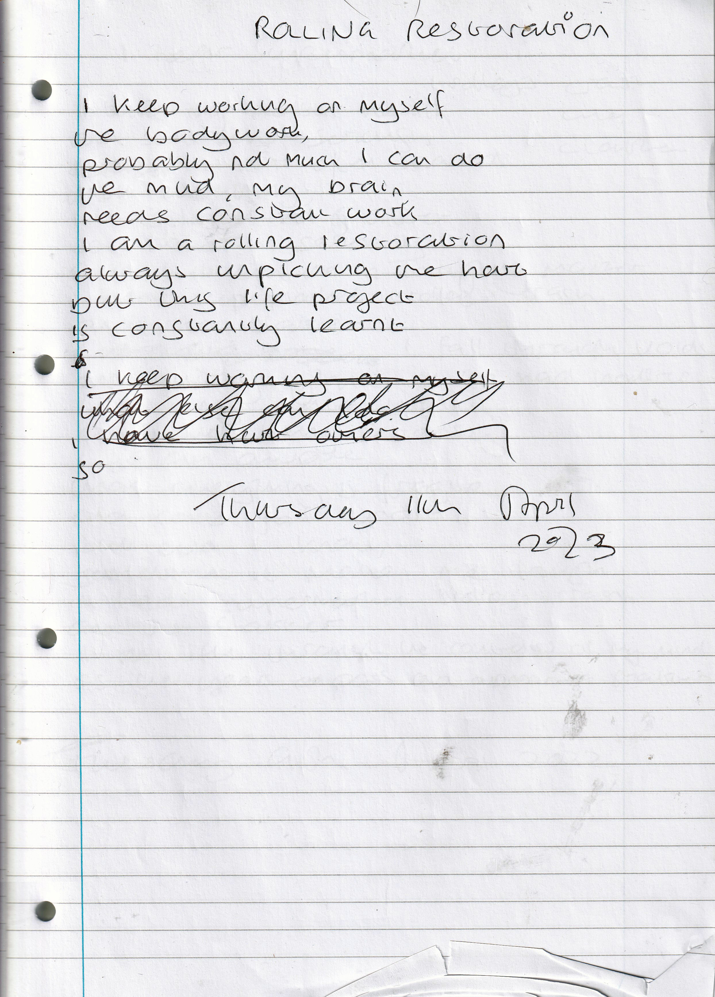 Rolling Restoration – Written Thursday 11th April 2023 (Aged 48)