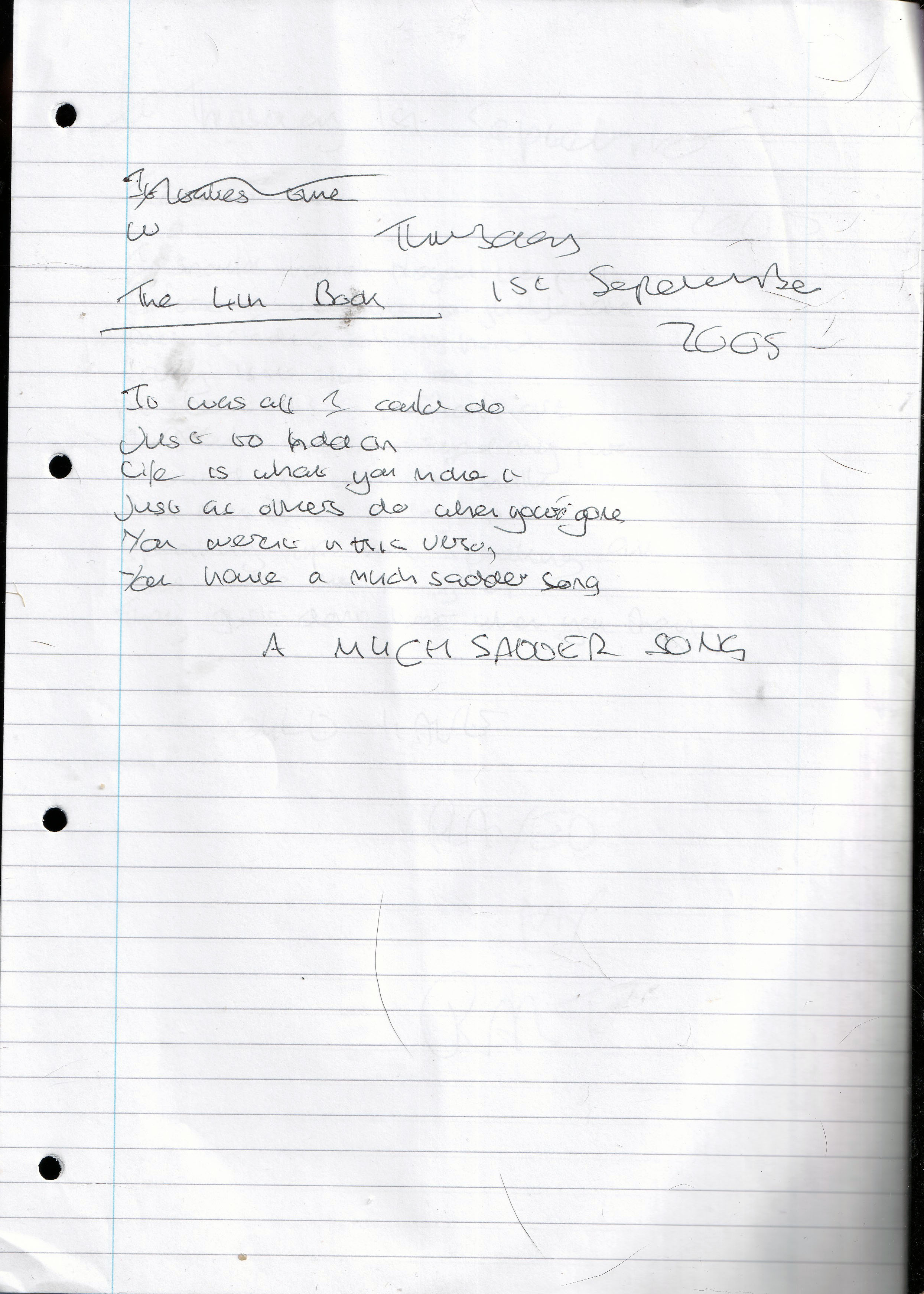 A Much Sadder Song – Written Thursday 1st September 2005 (Aged 30)