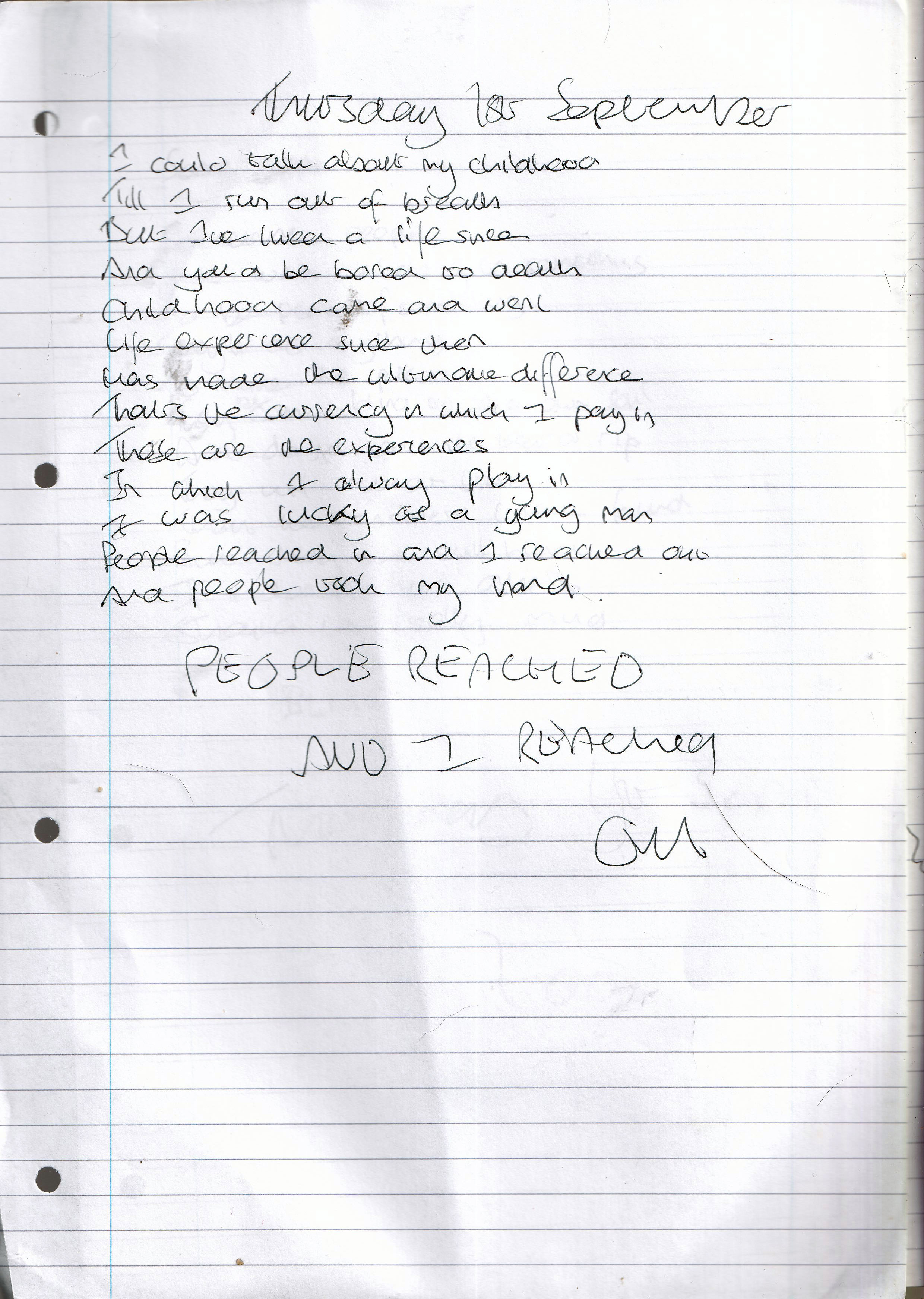 People Reached In And I Reached Out – Written Thursday 1st September 2005 (Aged 30)