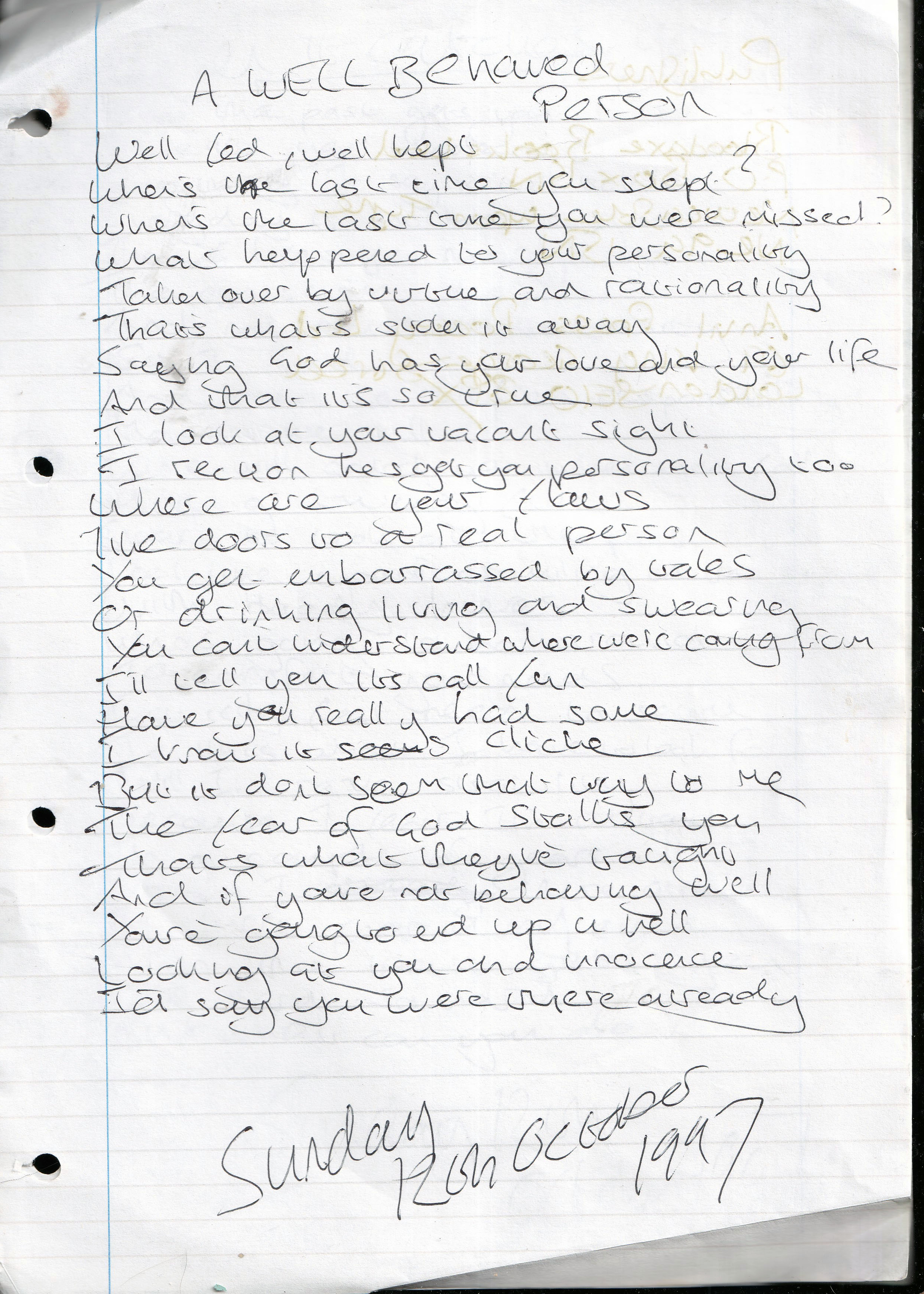 A Well Behaved Person – Written Sunday 12th October 1997 (Aged 22)