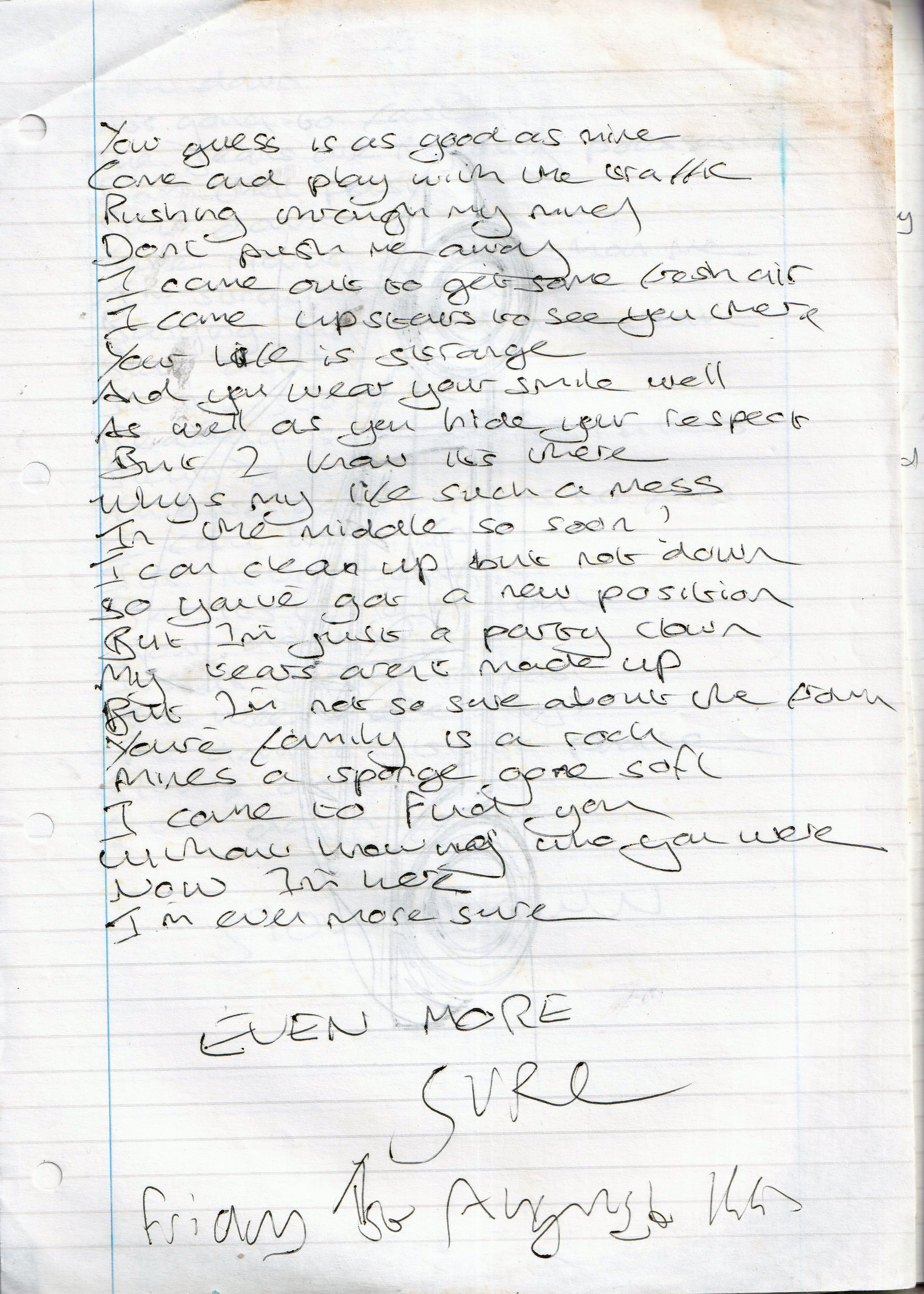 Even More Sure – Written Friday 1st September 1997 (Aged 22)