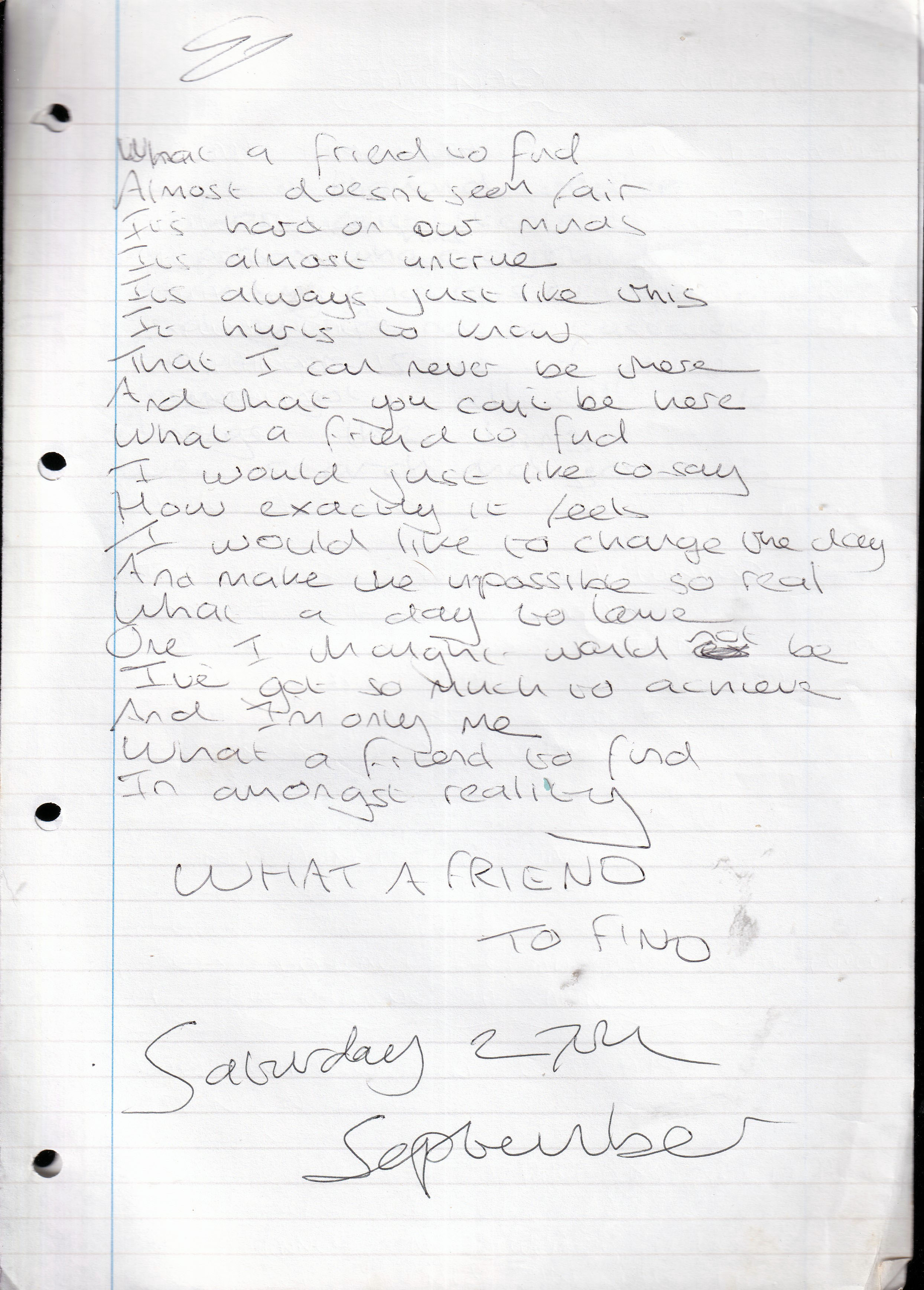What A Friend To Find – Written Saturday 27th September 1997 (Aged 22)