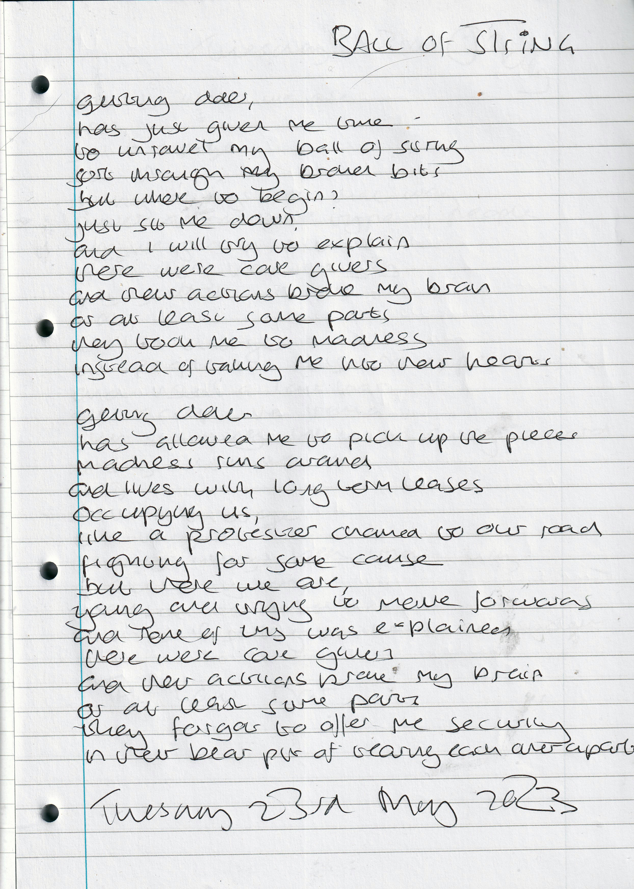 Ball of String – Written Tuesday 23rd May 2023 (Aged 48)