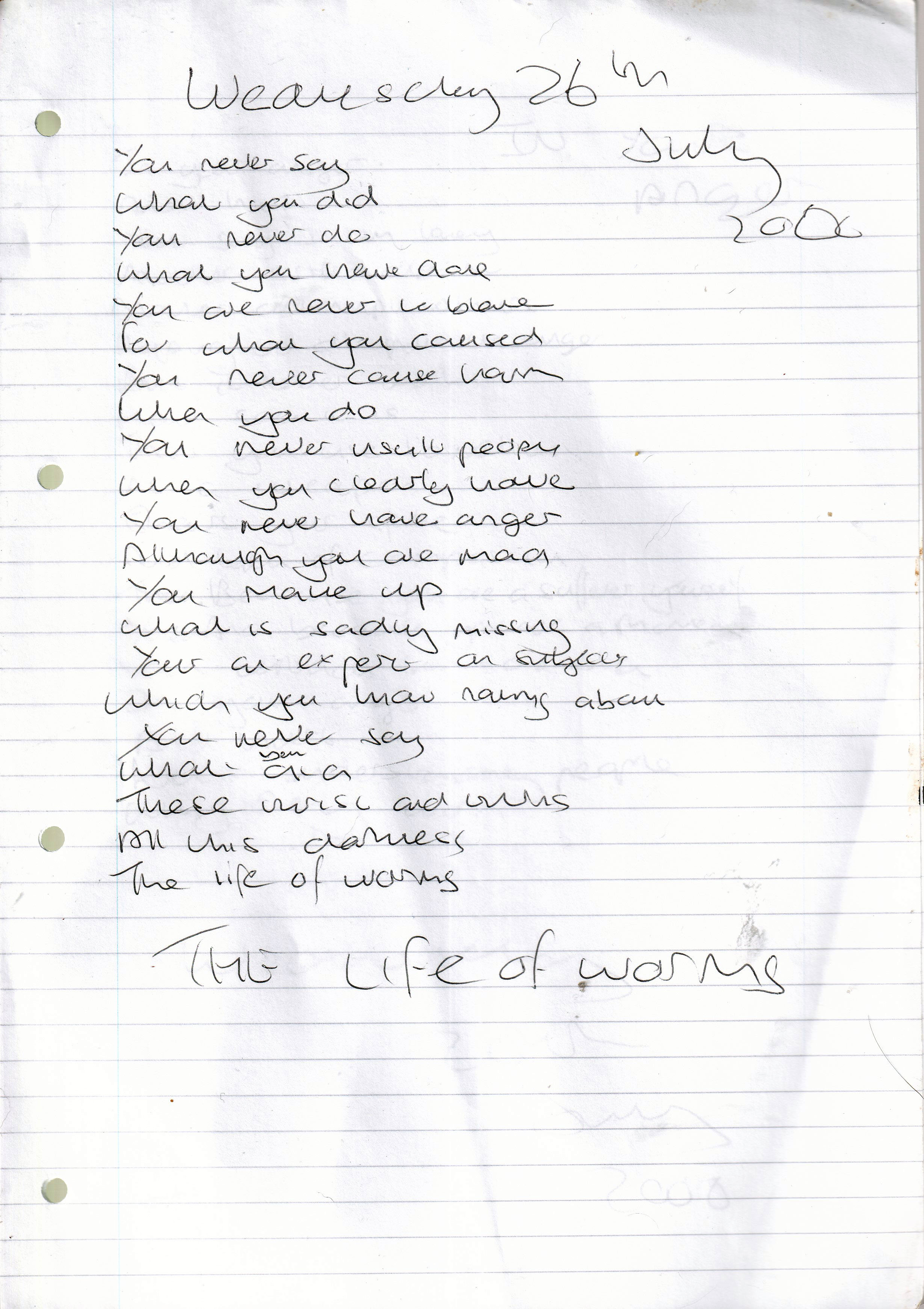 Life of Worms – Written Wednesday 26th July 2006 (Aged 31)