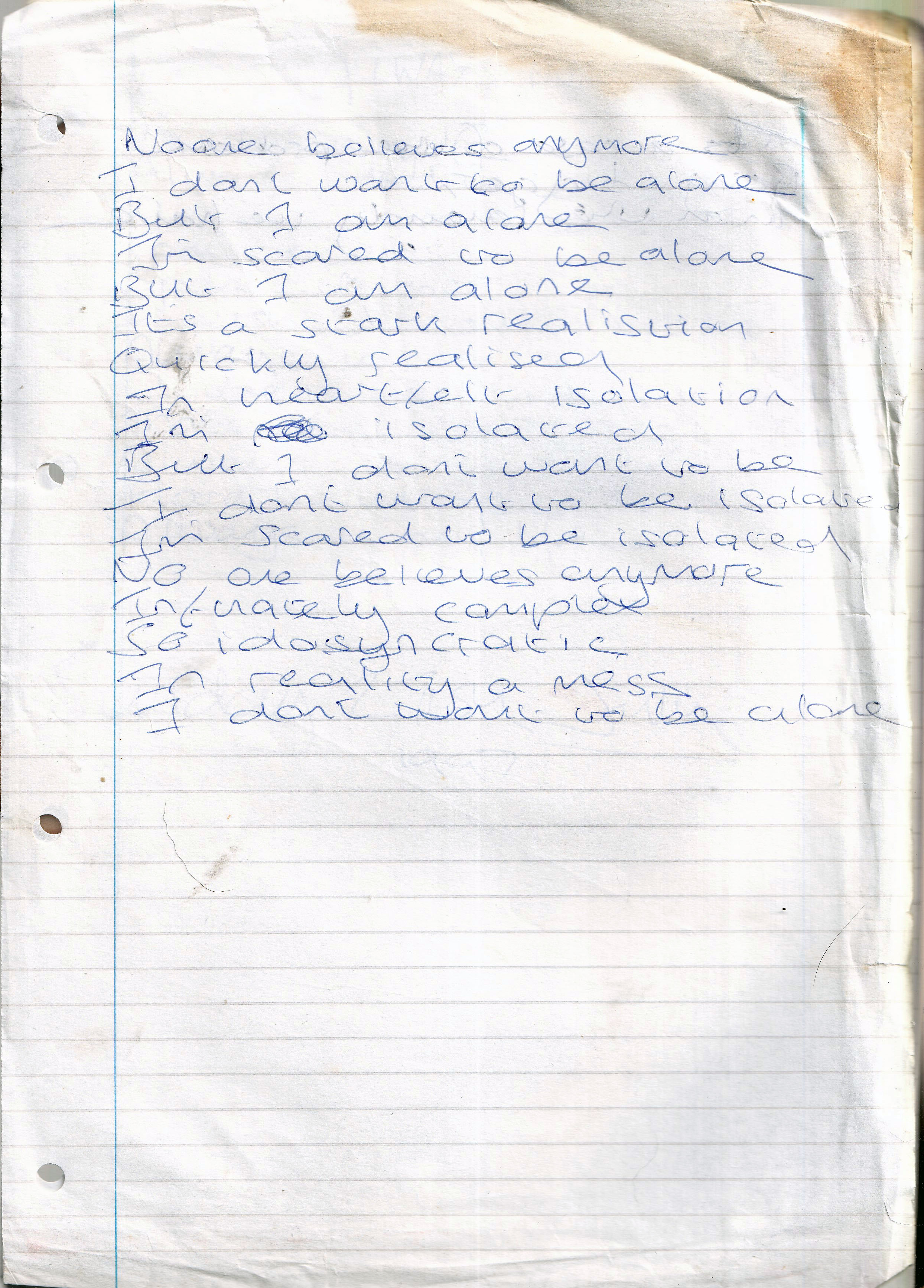No One Wants To Believe Anymore – Written July 1997 (Aged 22)