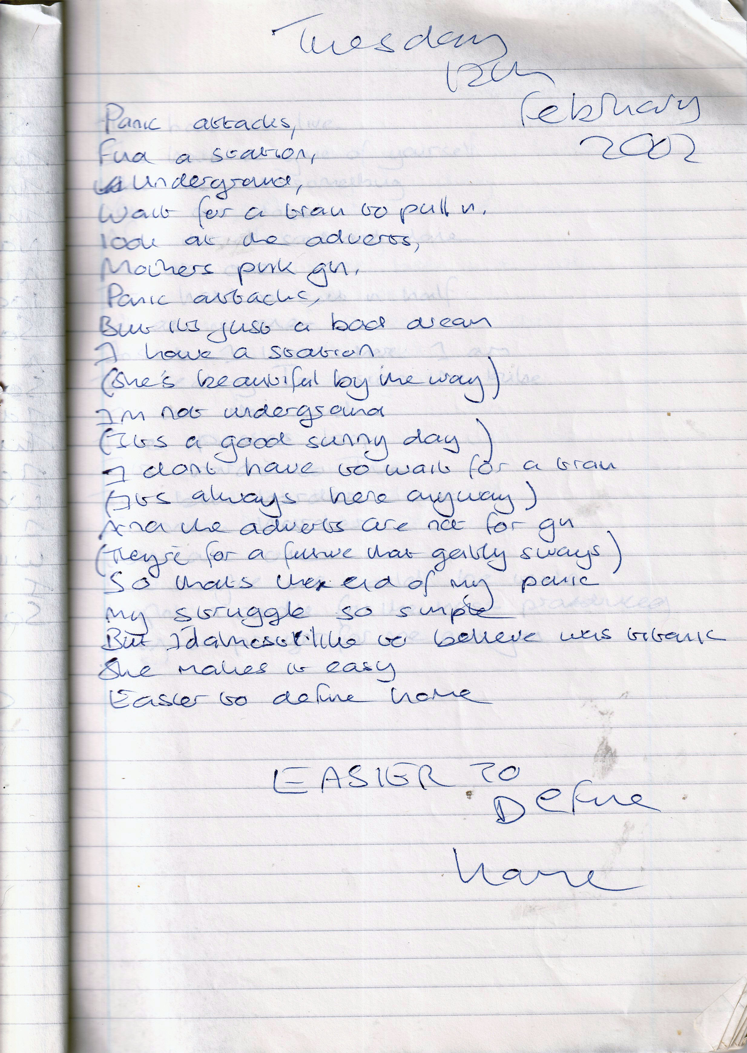 Easier To Define Home – Written Tuesday 12th February 2002 (Aged 27)
