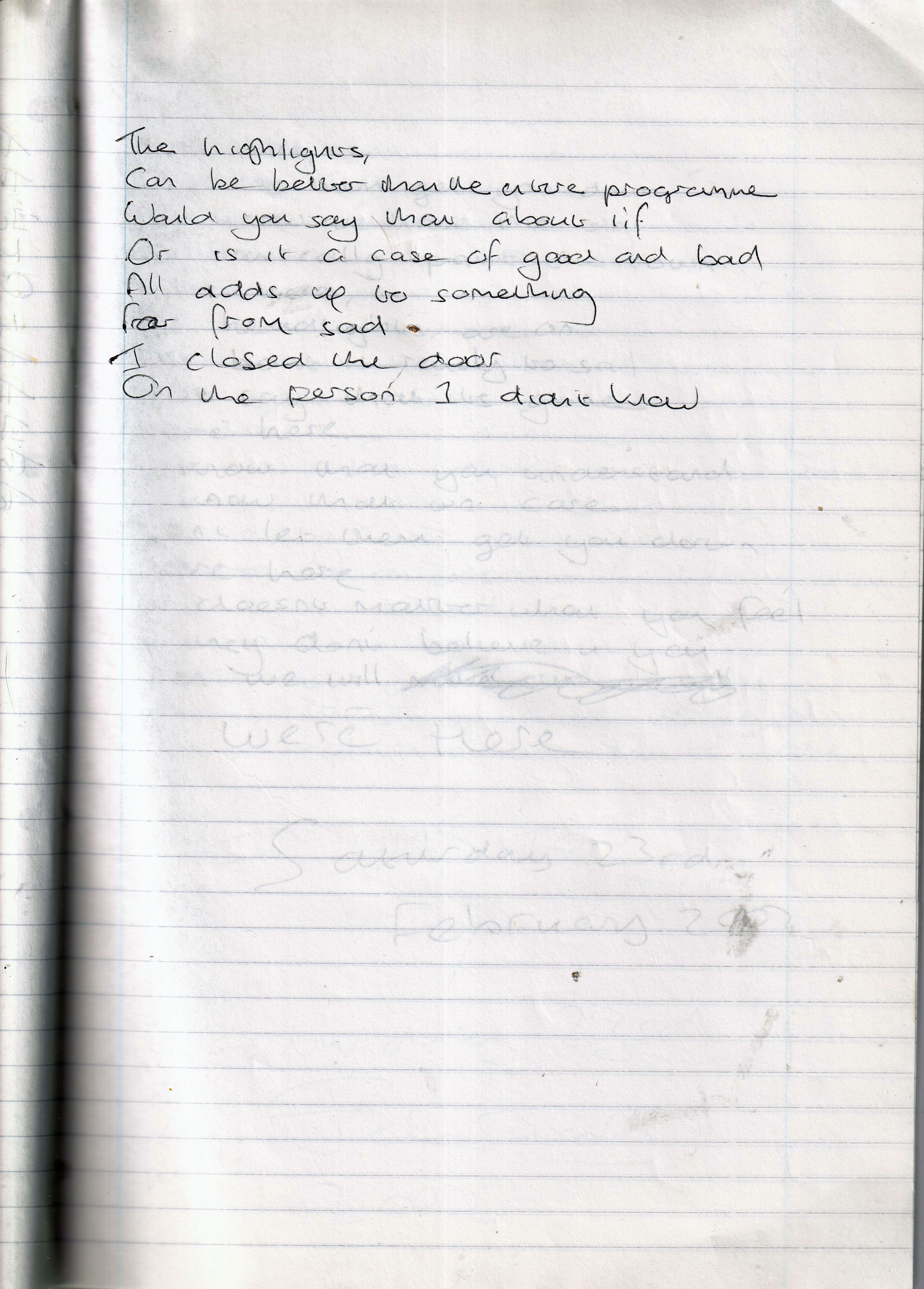 Highlights – Written February 2002 (Aged 22)