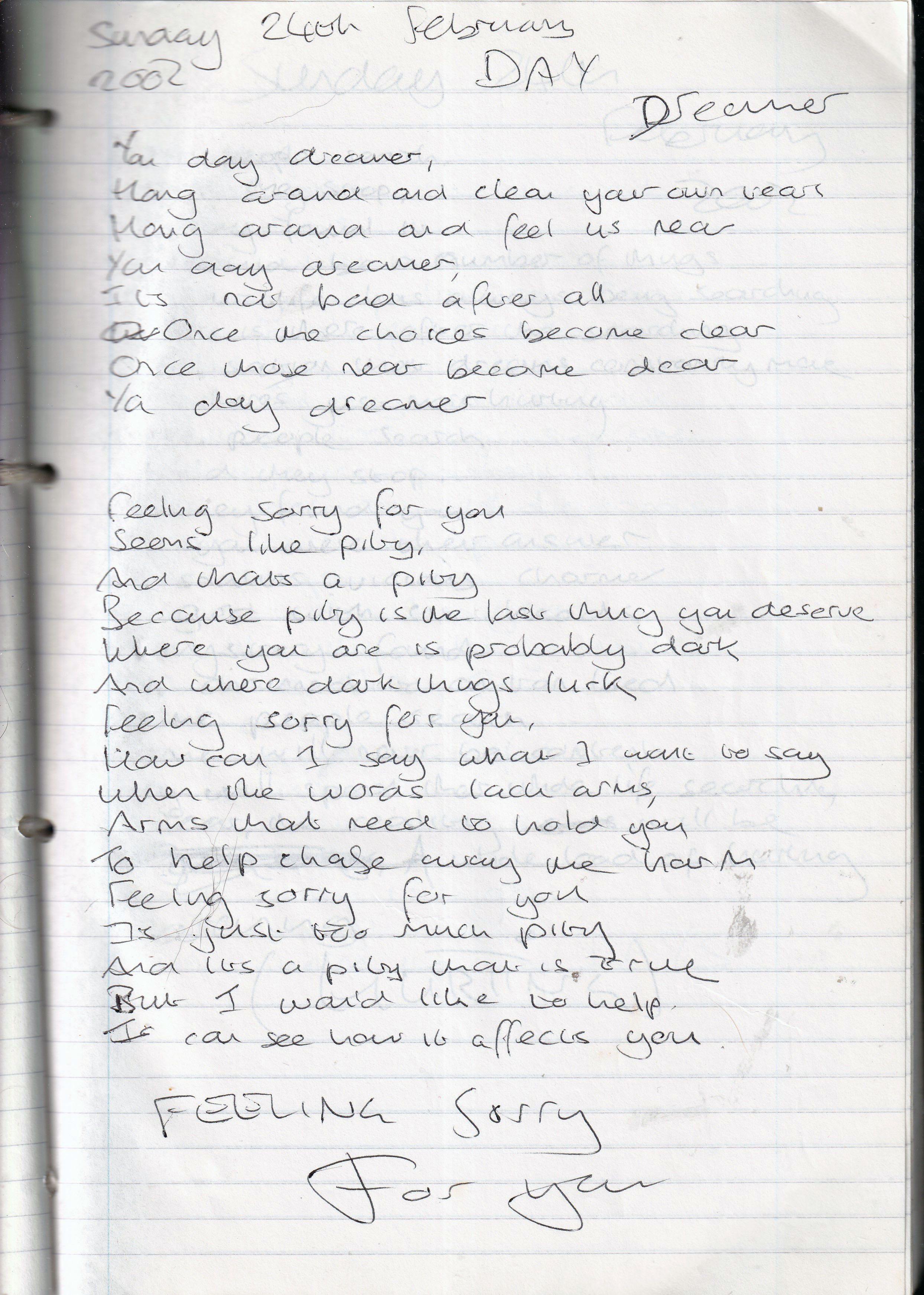 Feeling Sorry For You – Written Sunday 24th February 2002 (Aged 26)