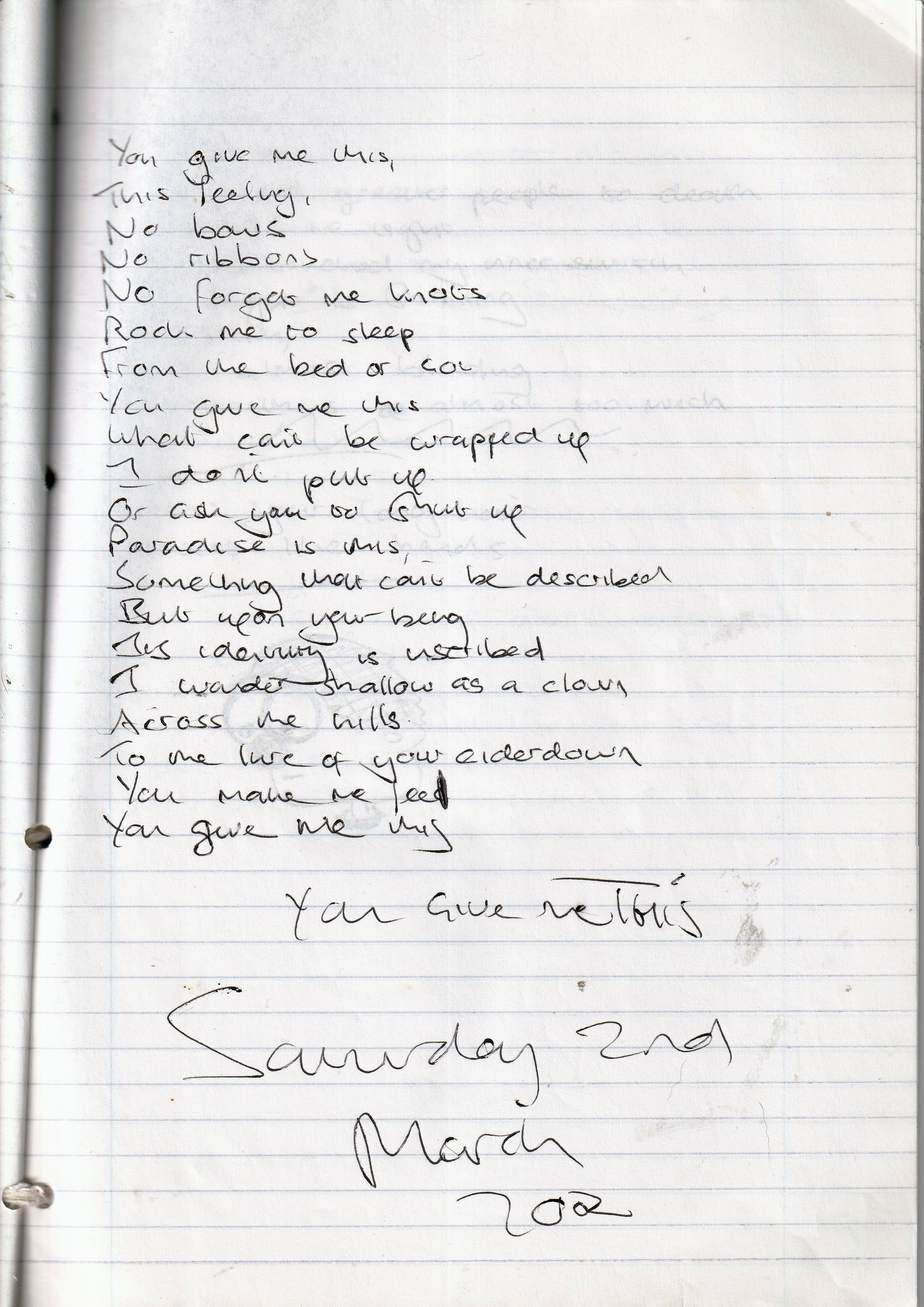 You Give Me This – Written Saturday 2nd March 2002 (Aged 27)