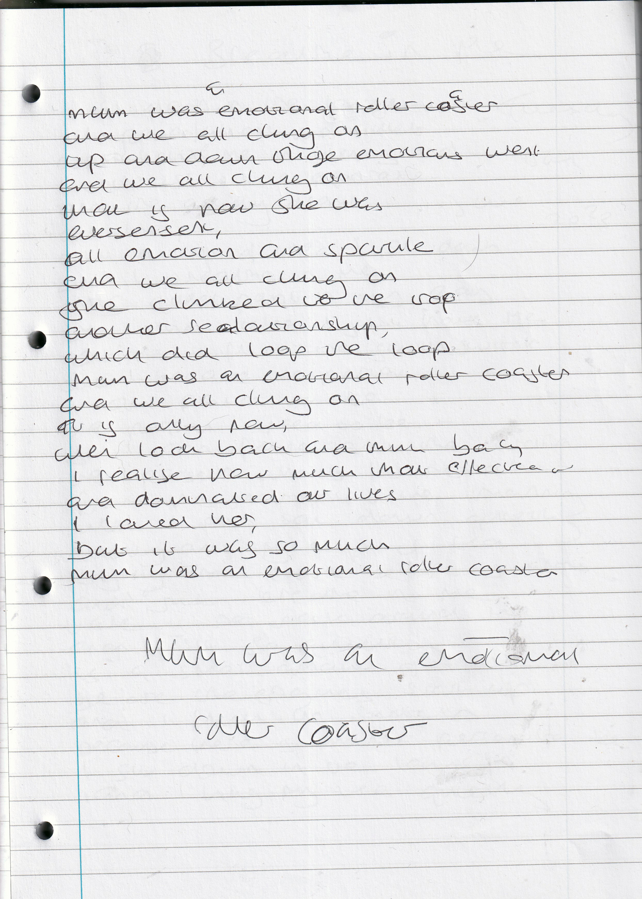 Mum Was a Rollercoaster – Written May 2023 (Aged 48)