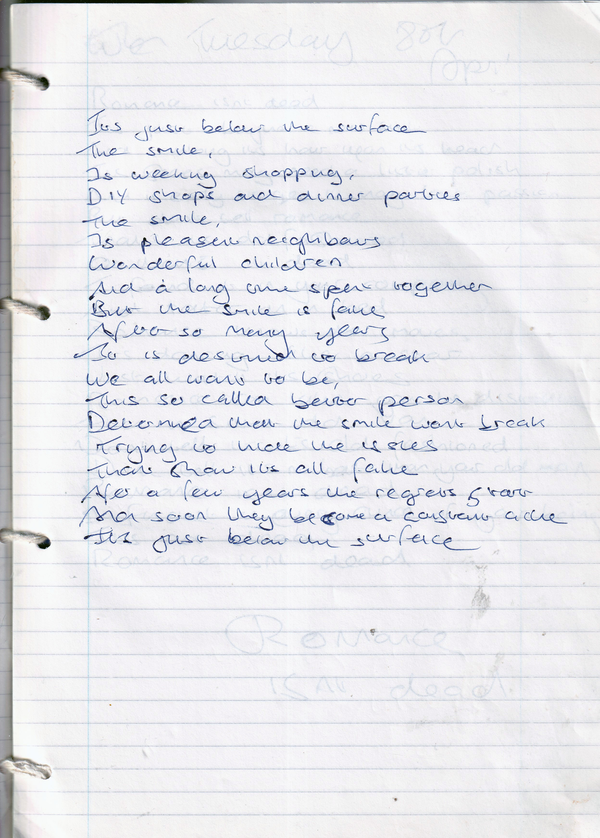 Just Below The Surface – Written March 2002 (Aged 27)
