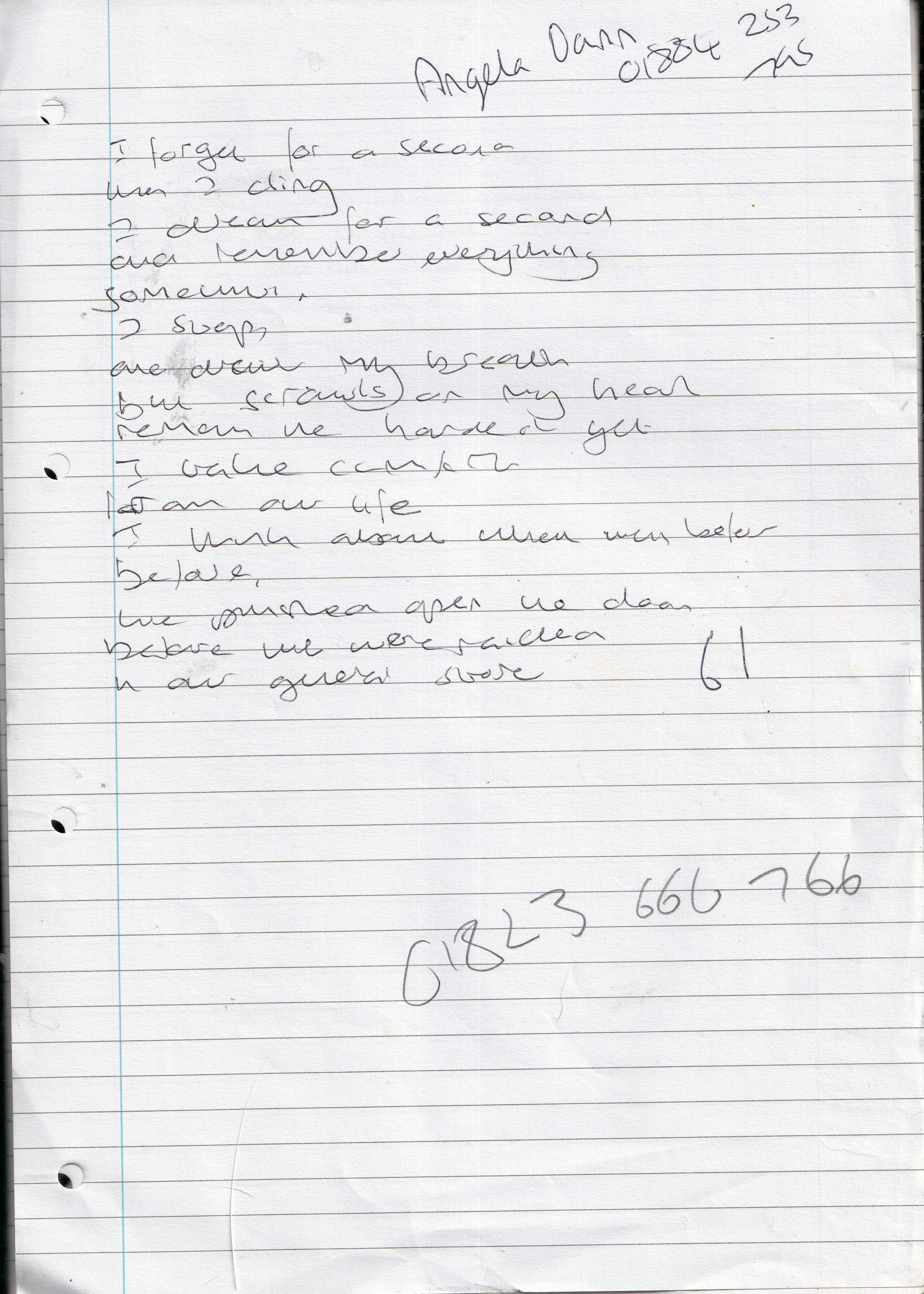 I Dream For A Second – Undated but most likely written late 2013 (Aged 38)