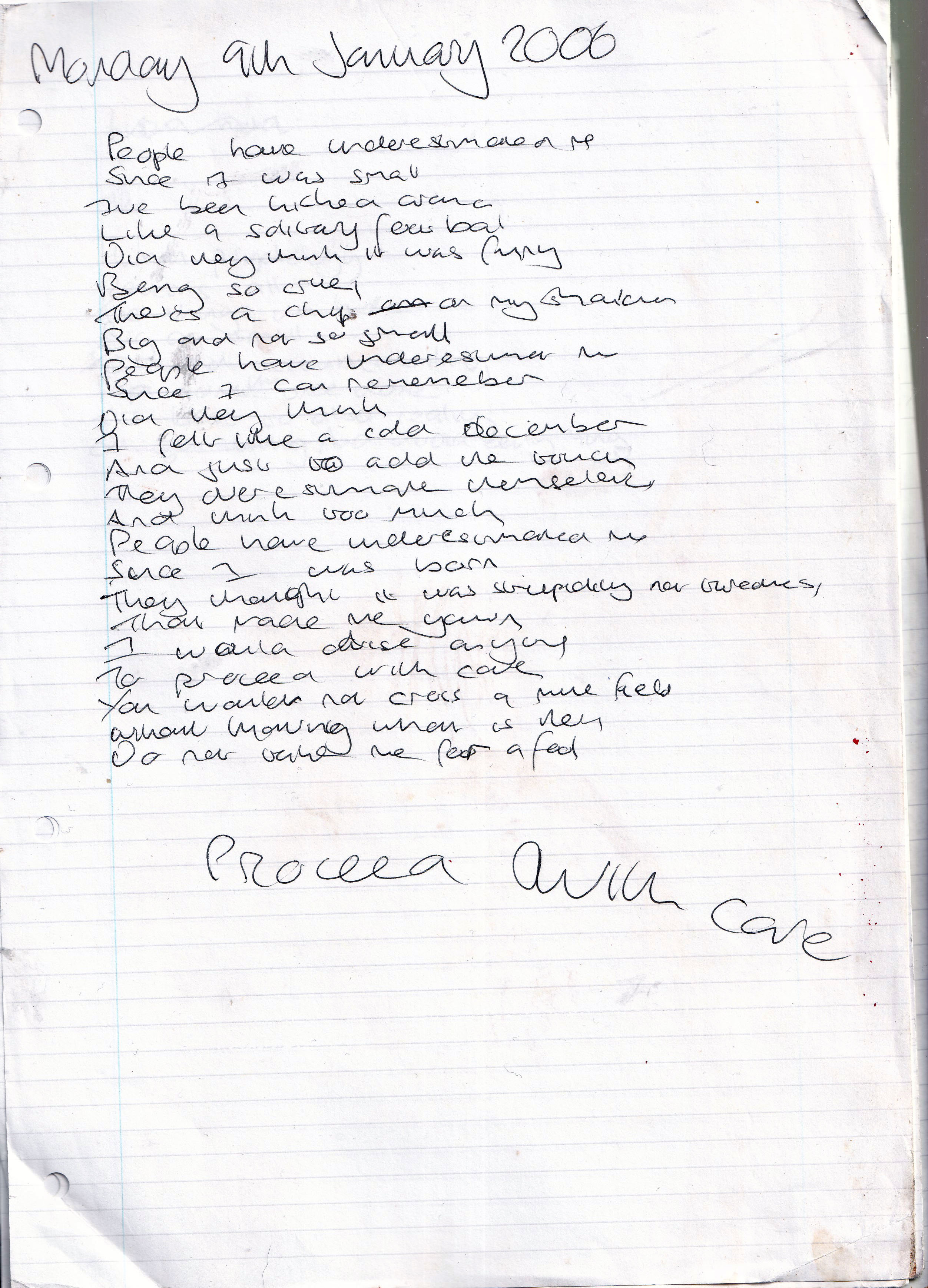 Proceed With Care – Written Monday 9th January 2006 (Aged 30)