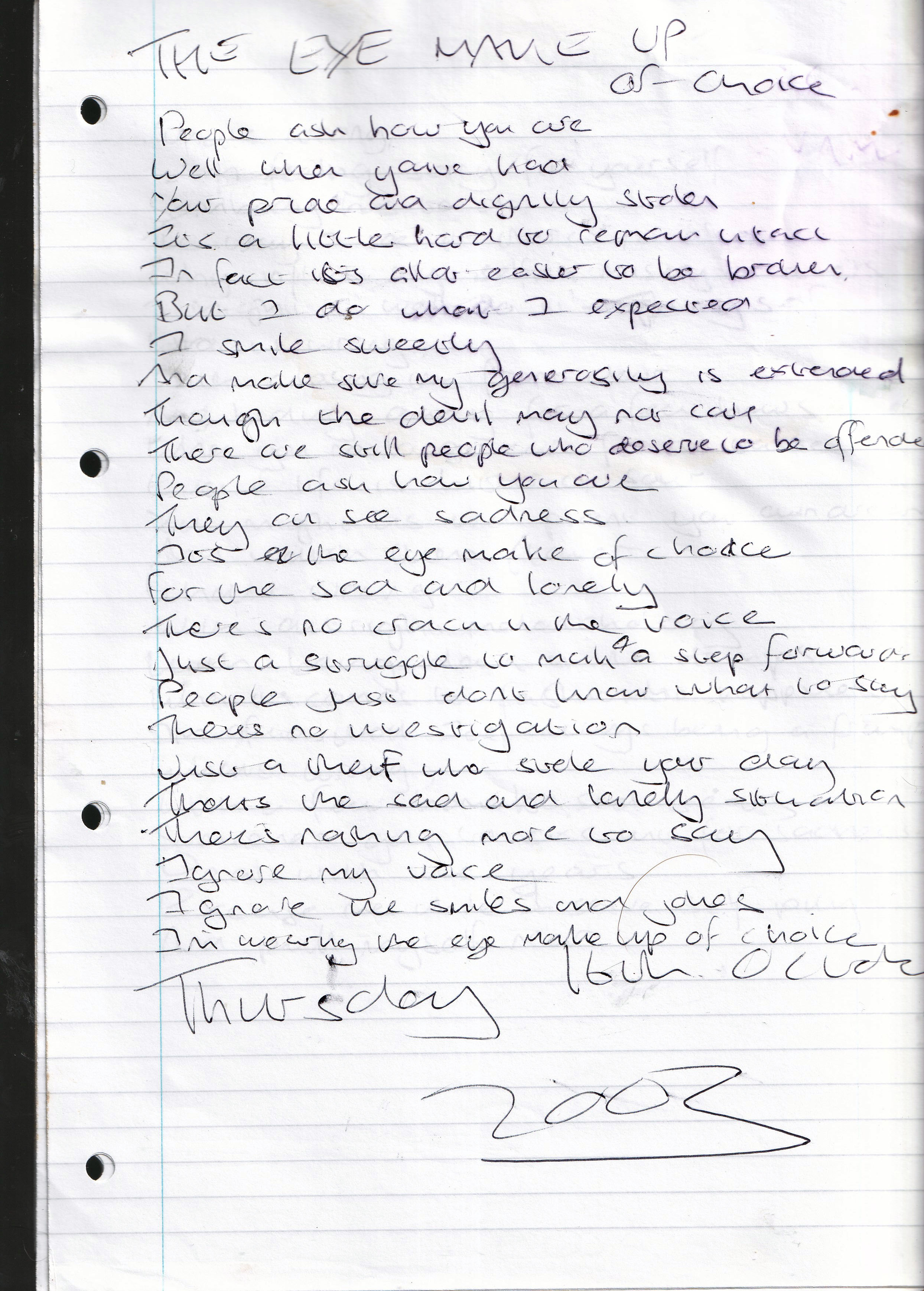 The Eye Make Up of Choice – Written Thursday 16th October 2003 (Aged 28)