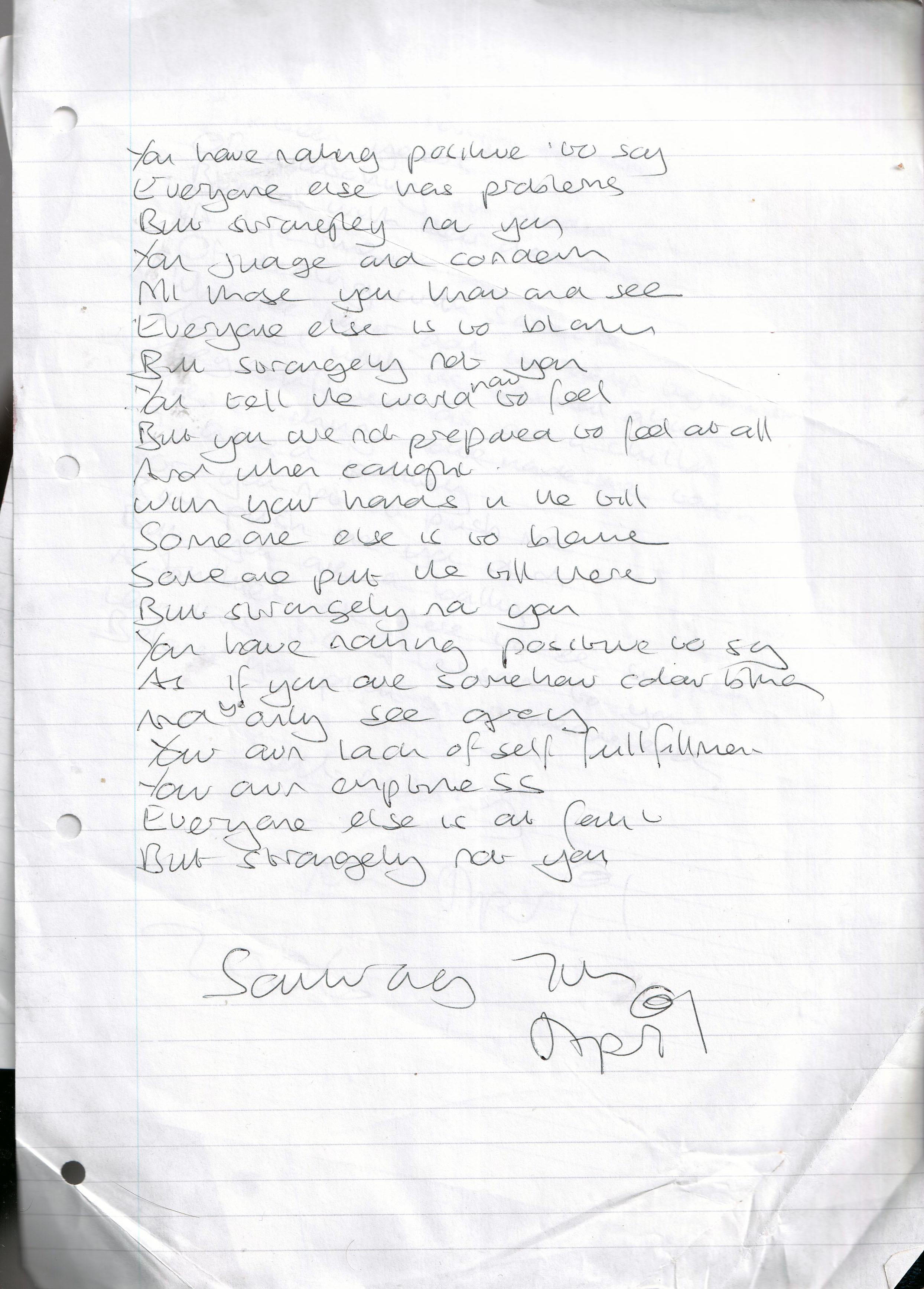 Nothing Positive To Say – Written Saturday 7th April 2006 (Aged 31)