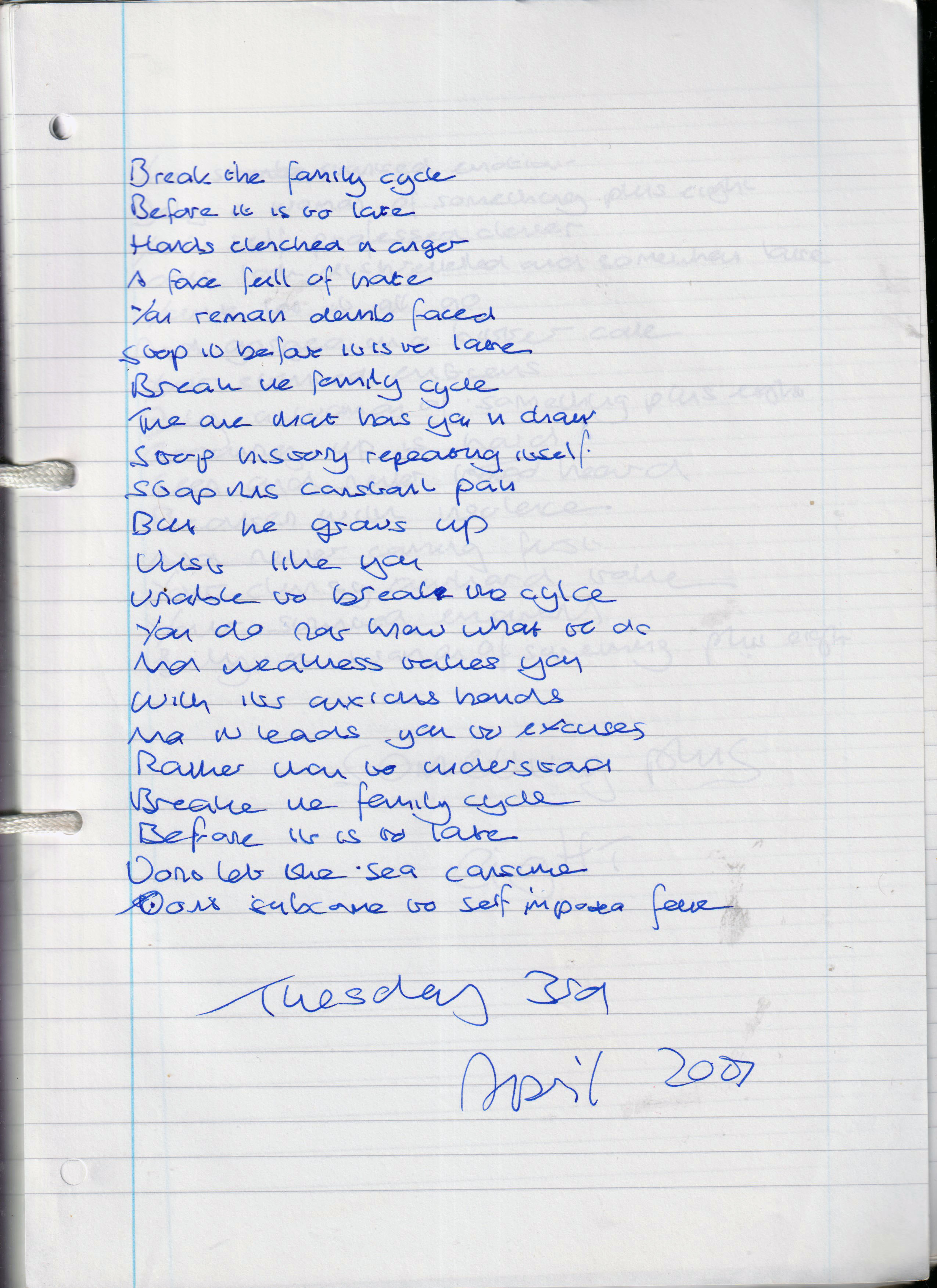 Family Cycle – Written Tuesday 3rd April 2007 (Aged 32)