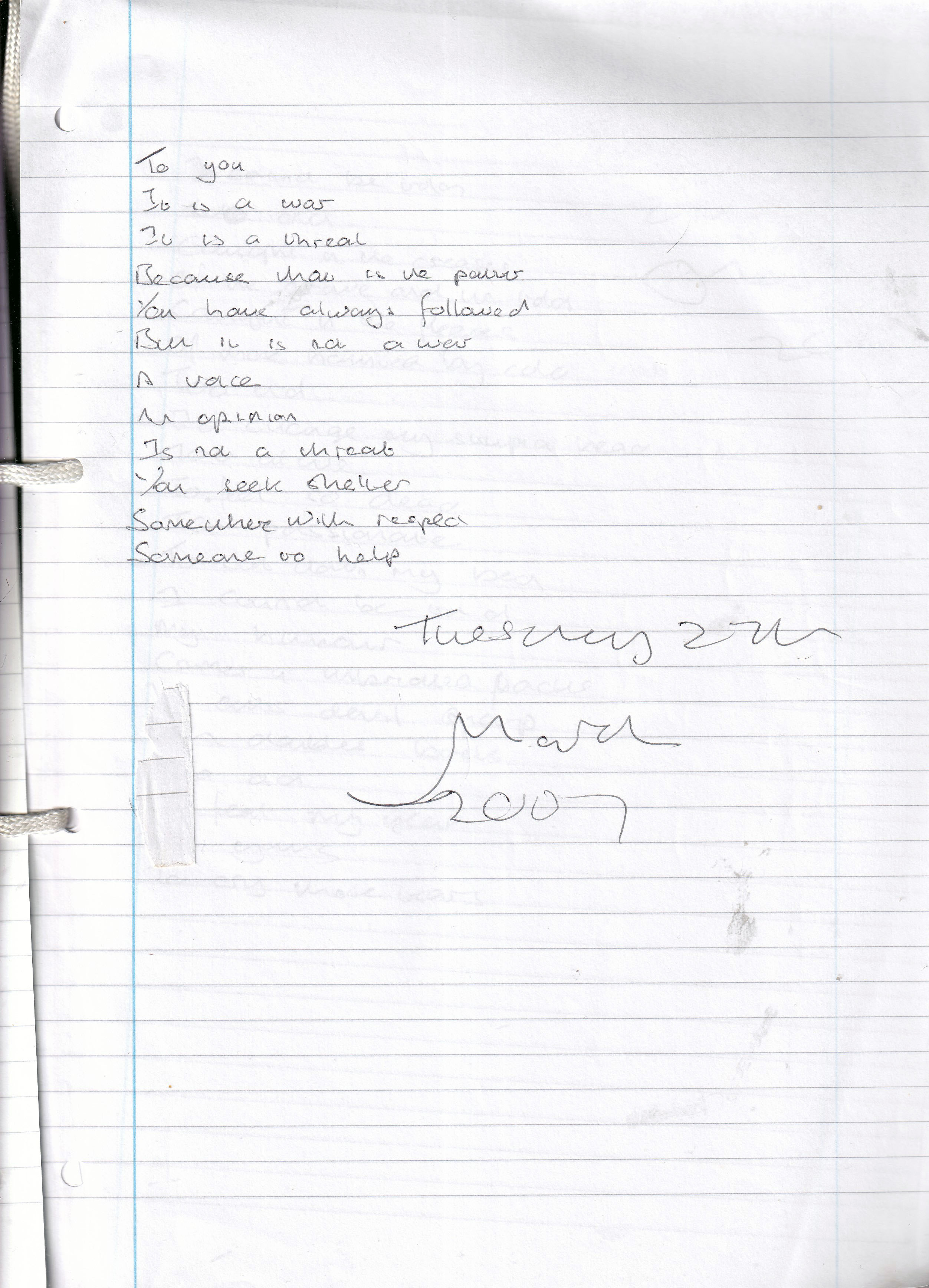 War – Written Tuesday 27th March 2007 (Aged 32)