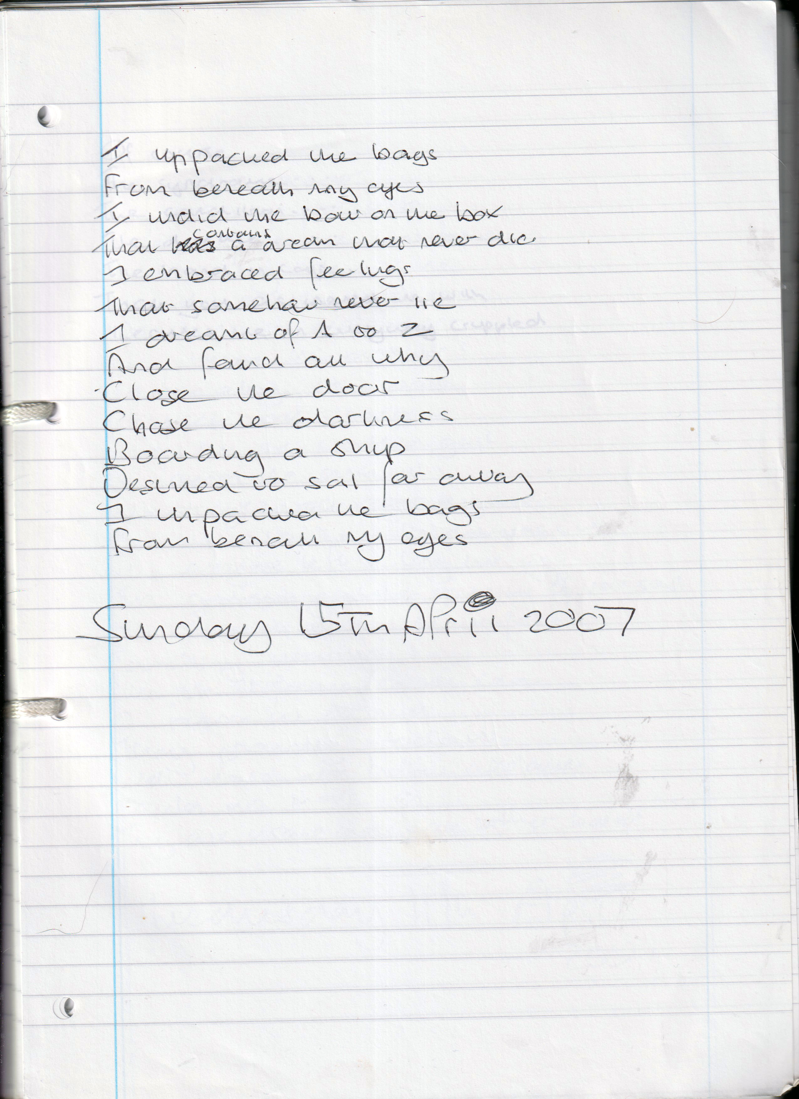 Unpacked The Bags – Written Sunday 15th April 2007 (Aged 32)