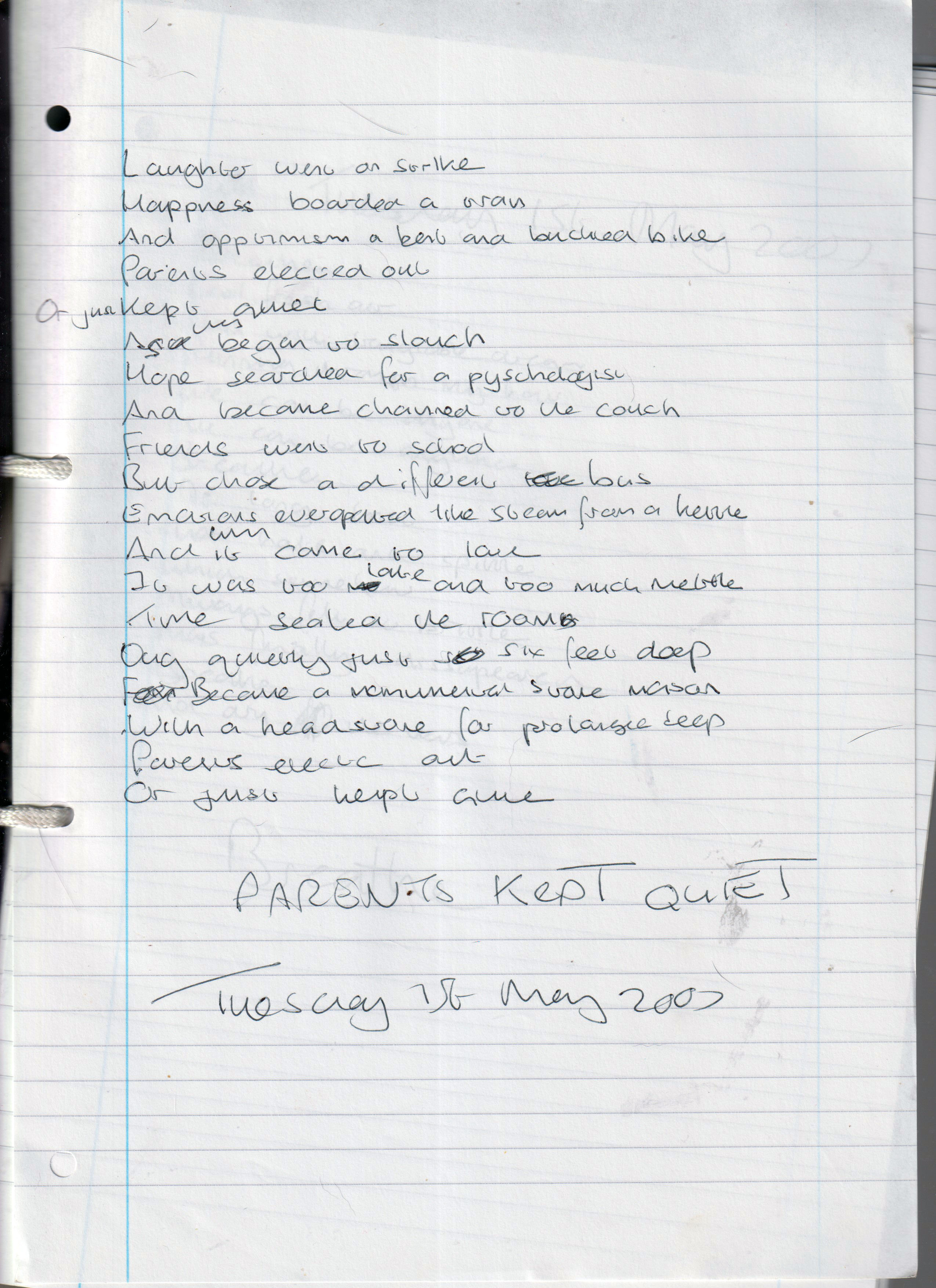 Parents Kept Quiet – Written Tuesday 1st May 2007 (Aged 32)