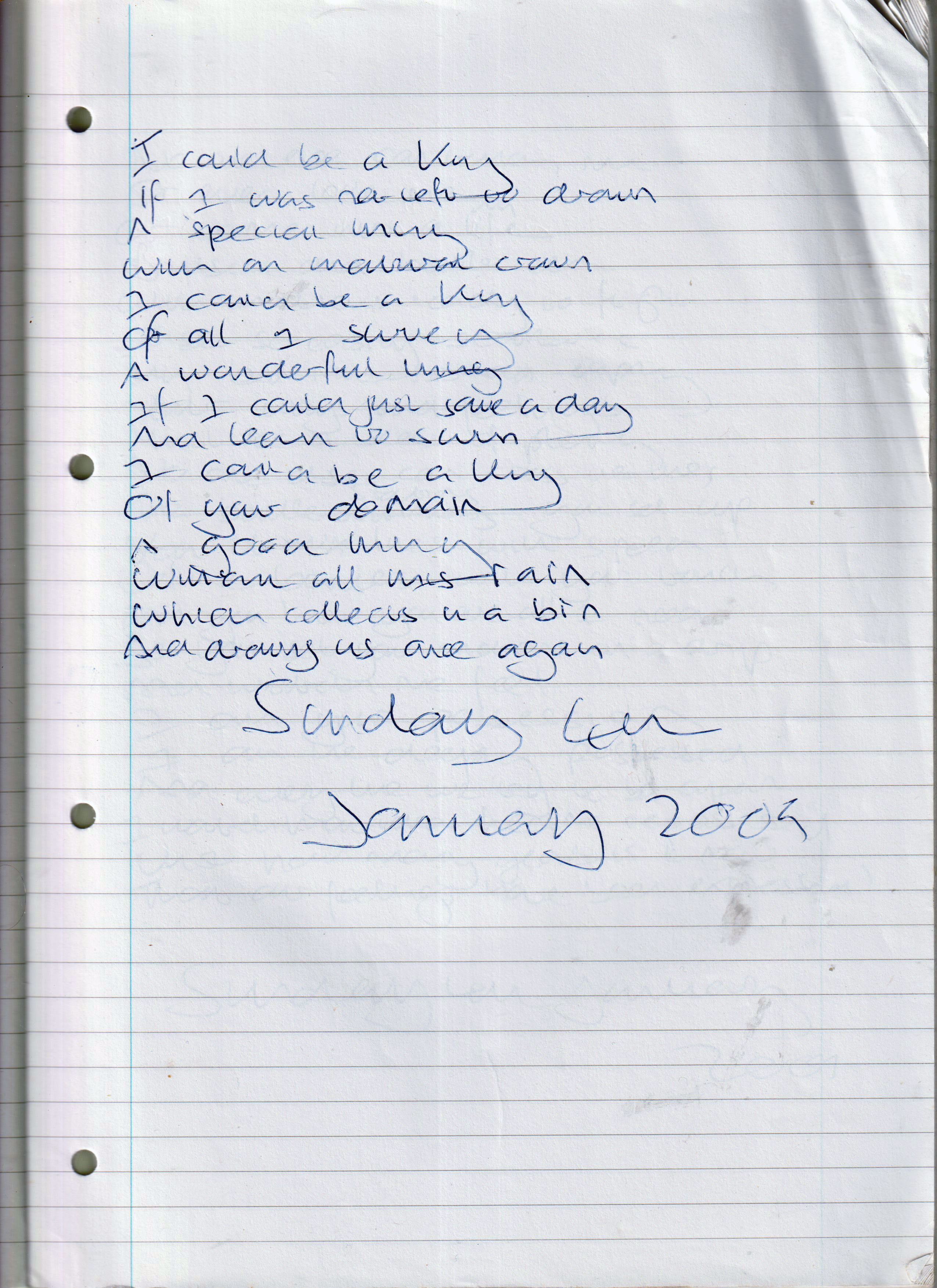 I Could Be a King – Written Sunday 4th January 2009 (Aged 33)