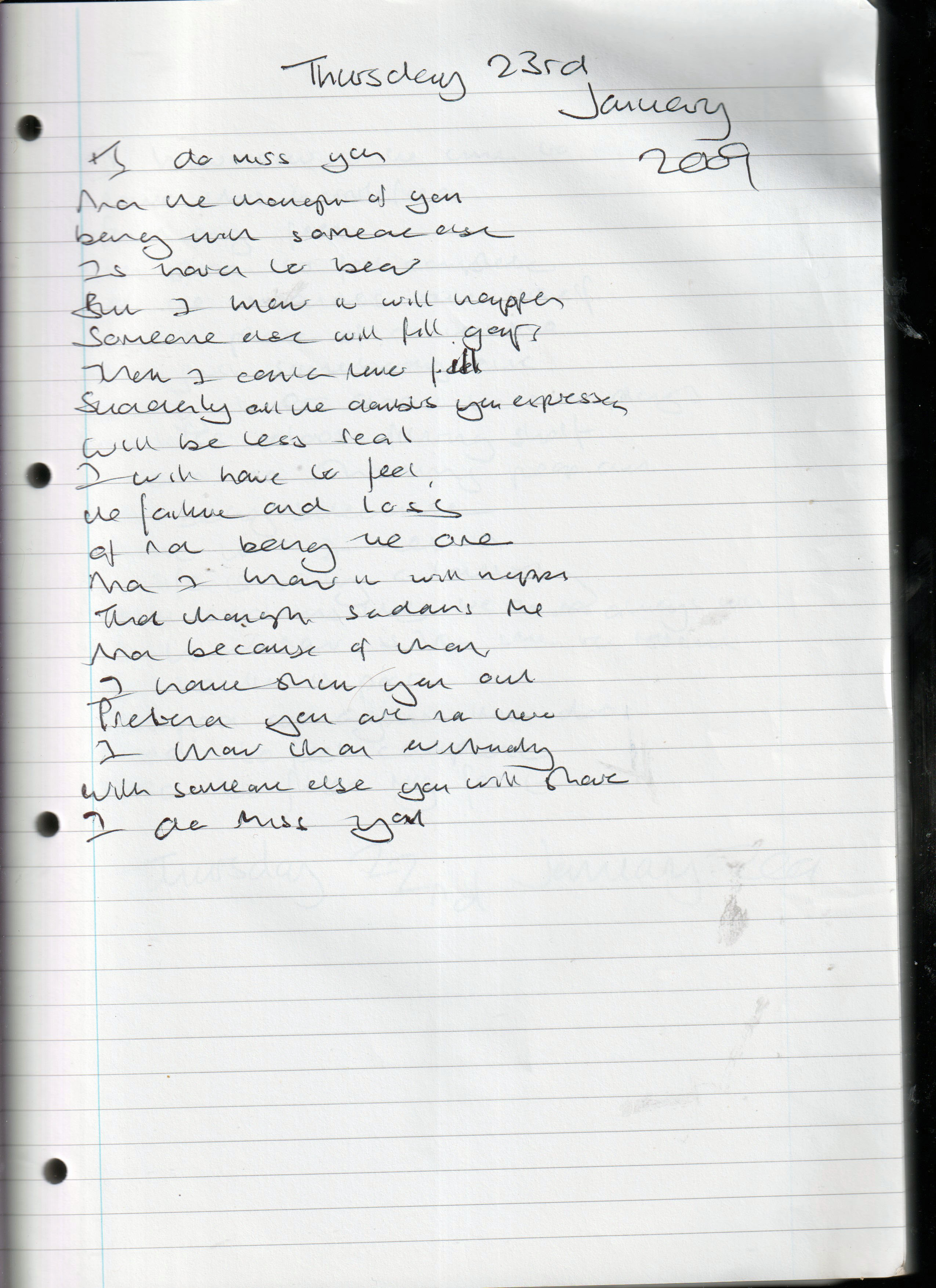 I Do Miss You – Written Thursday 23rd January 2009 (Aged 33)