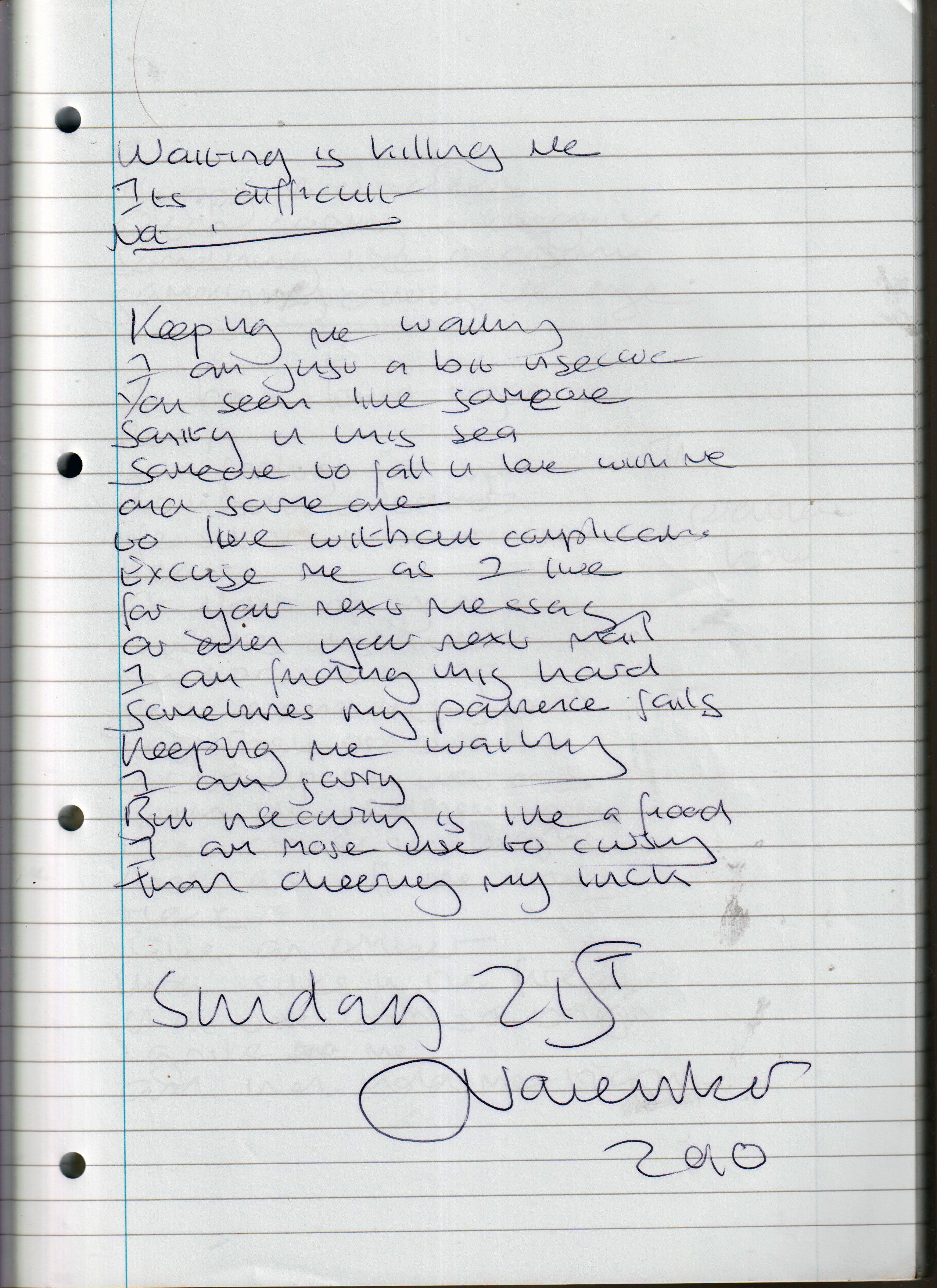 Keeping Me Waiting – Written Sunday 21st November 2010 (Aged 35)