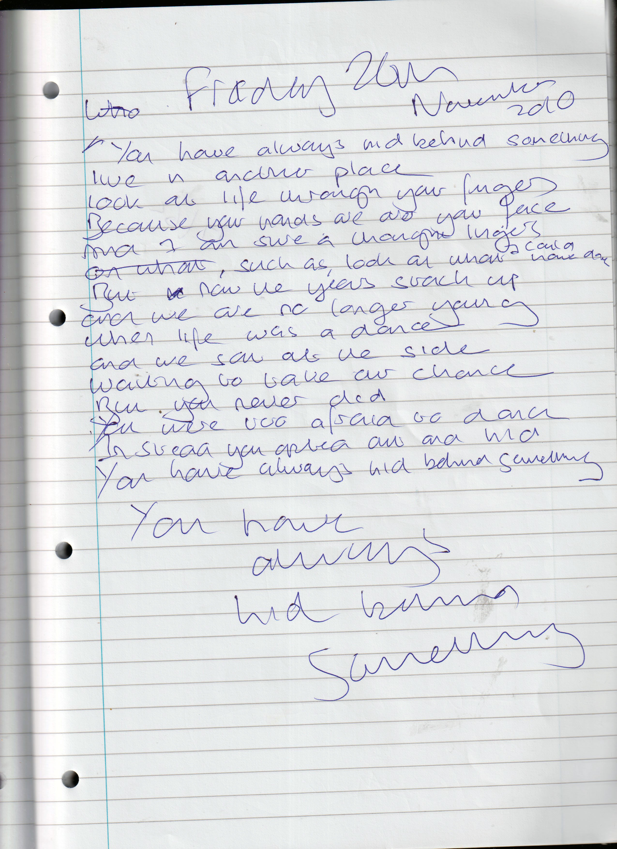 You Have Always Hid Behind Something – Written Friday 26th November 2010 (Aged 35)