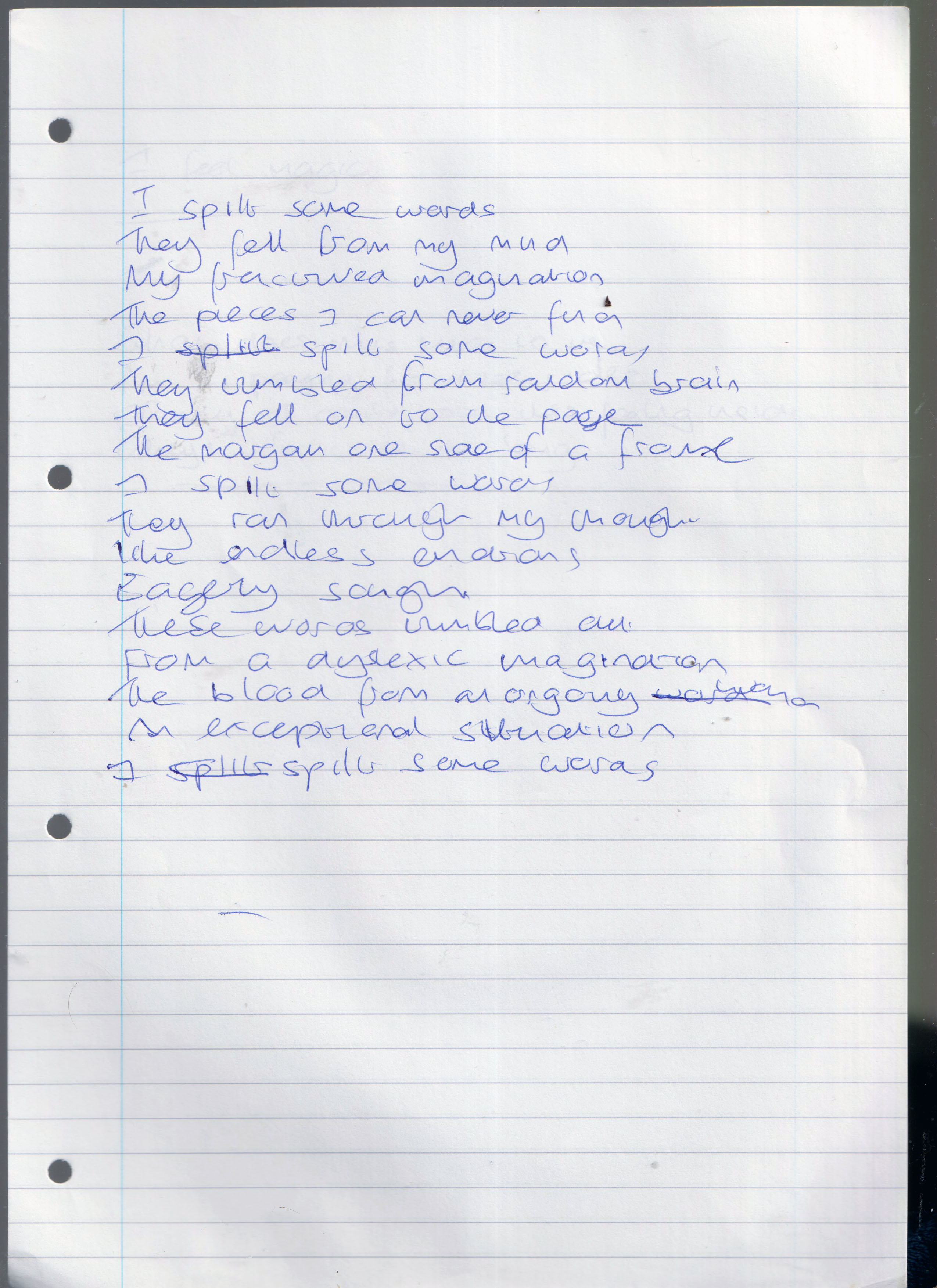 Spilt Some Words – Written August 2005 (Aged 30)