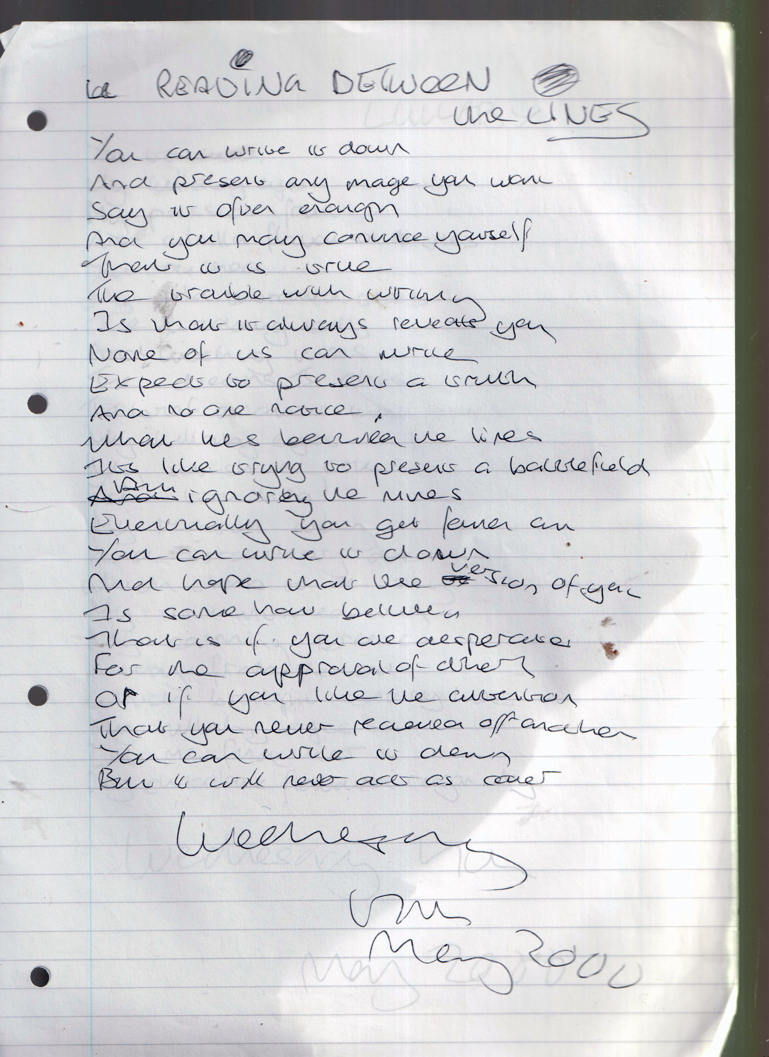 Reading Between The Lines – Written Wednesday 17th May 2006 (Aged 31)