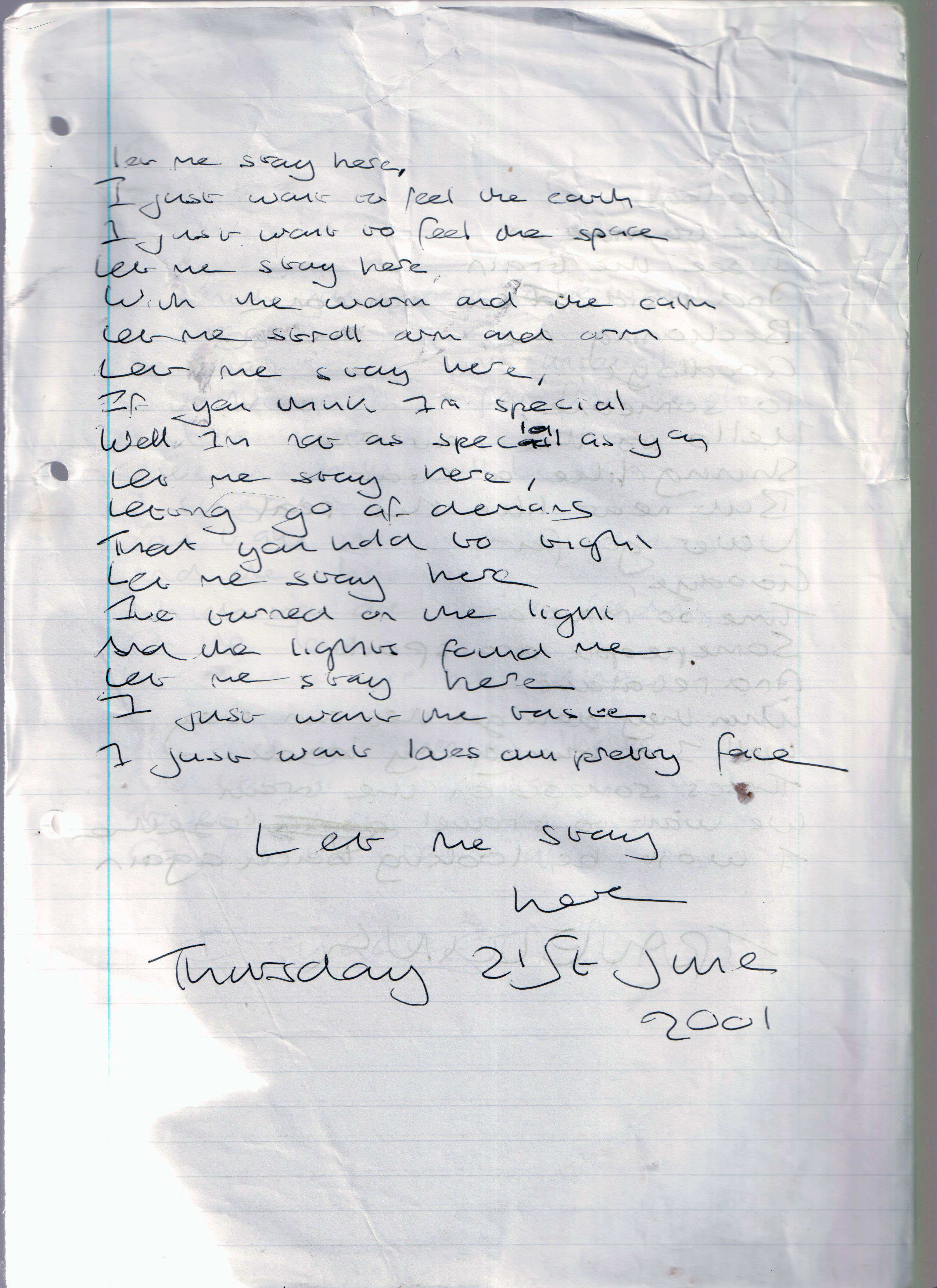 Let Me Stay Here – Written Thursday 21st June 2001 (Aged 26)