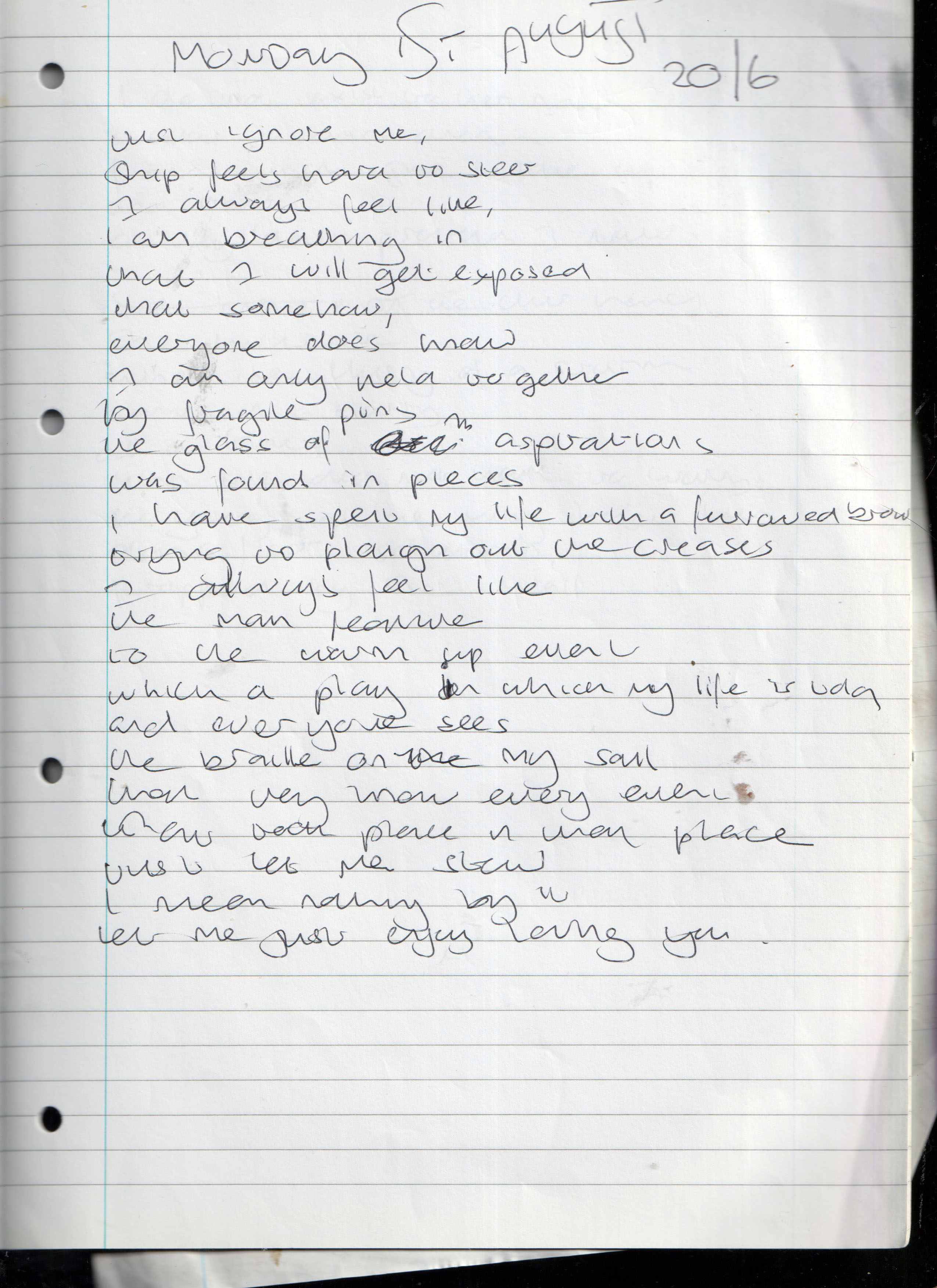 Ship Feels Hard to Steer – Written Monday 1st August 2016 (Aged 41)