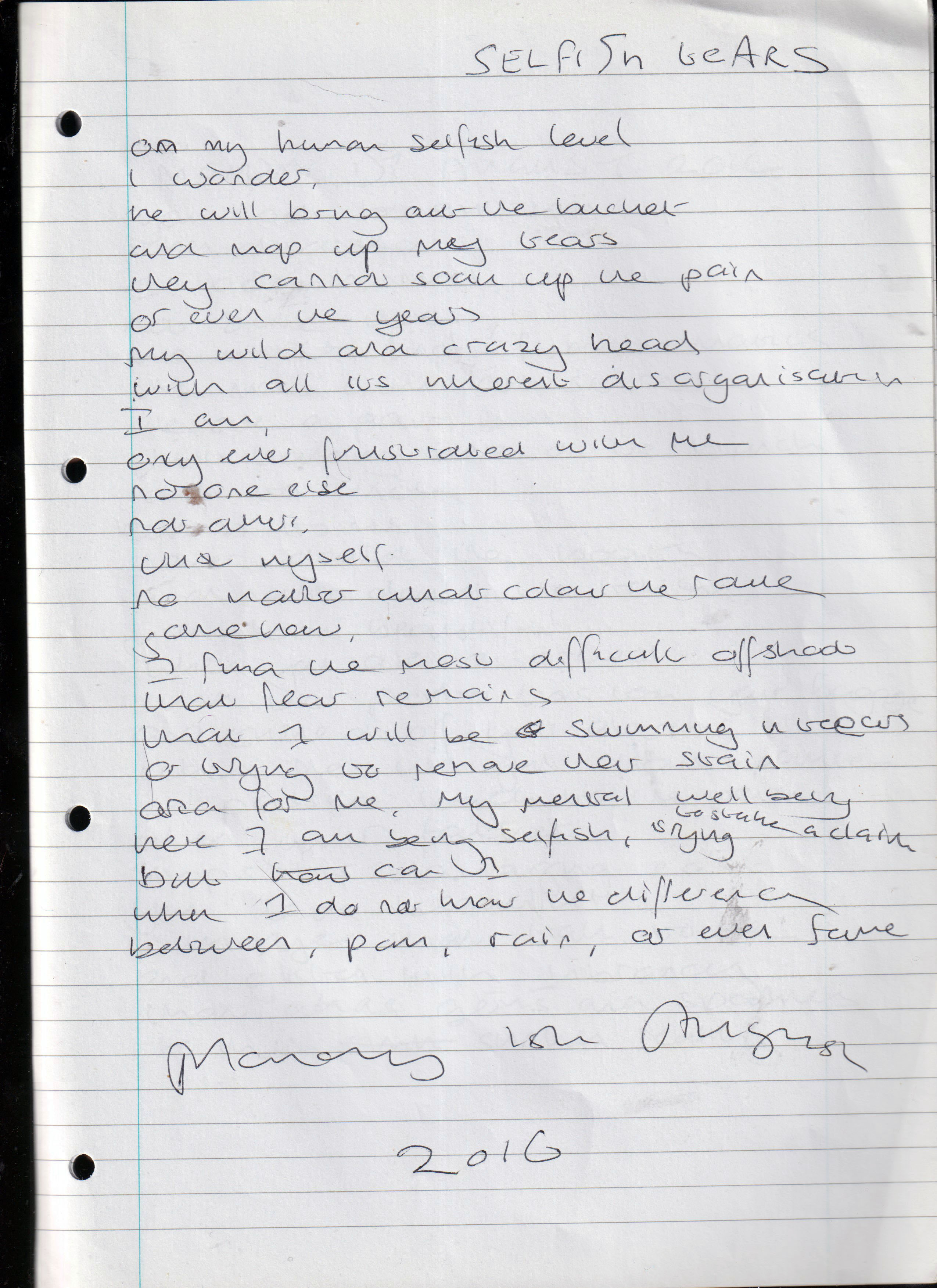 Selfish Tears – Written Monday 1st August 2016 (Aged 41)
