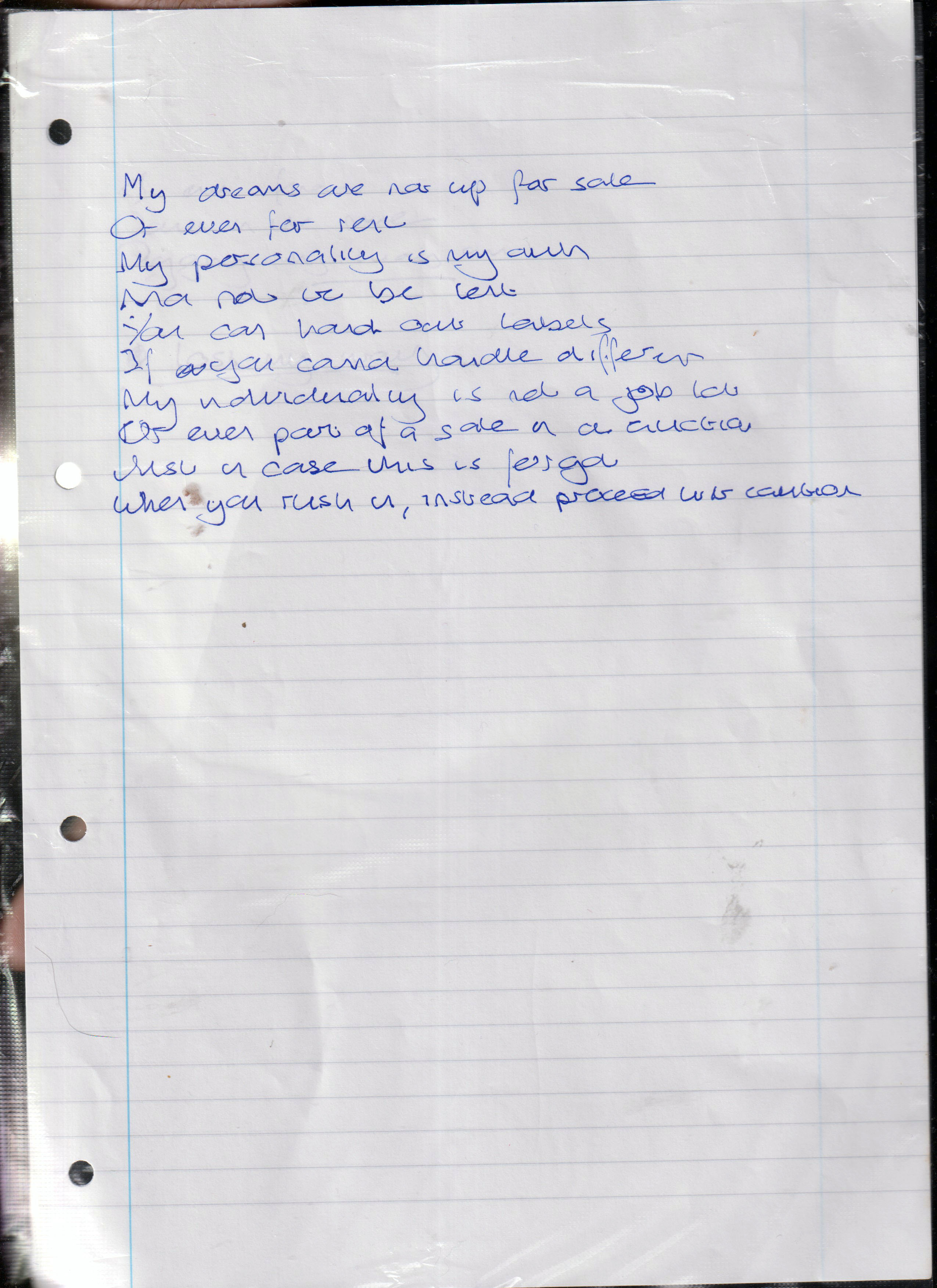 My Dreams Are Not For Sale – Unknown Date – most likely between 2005 / 2010