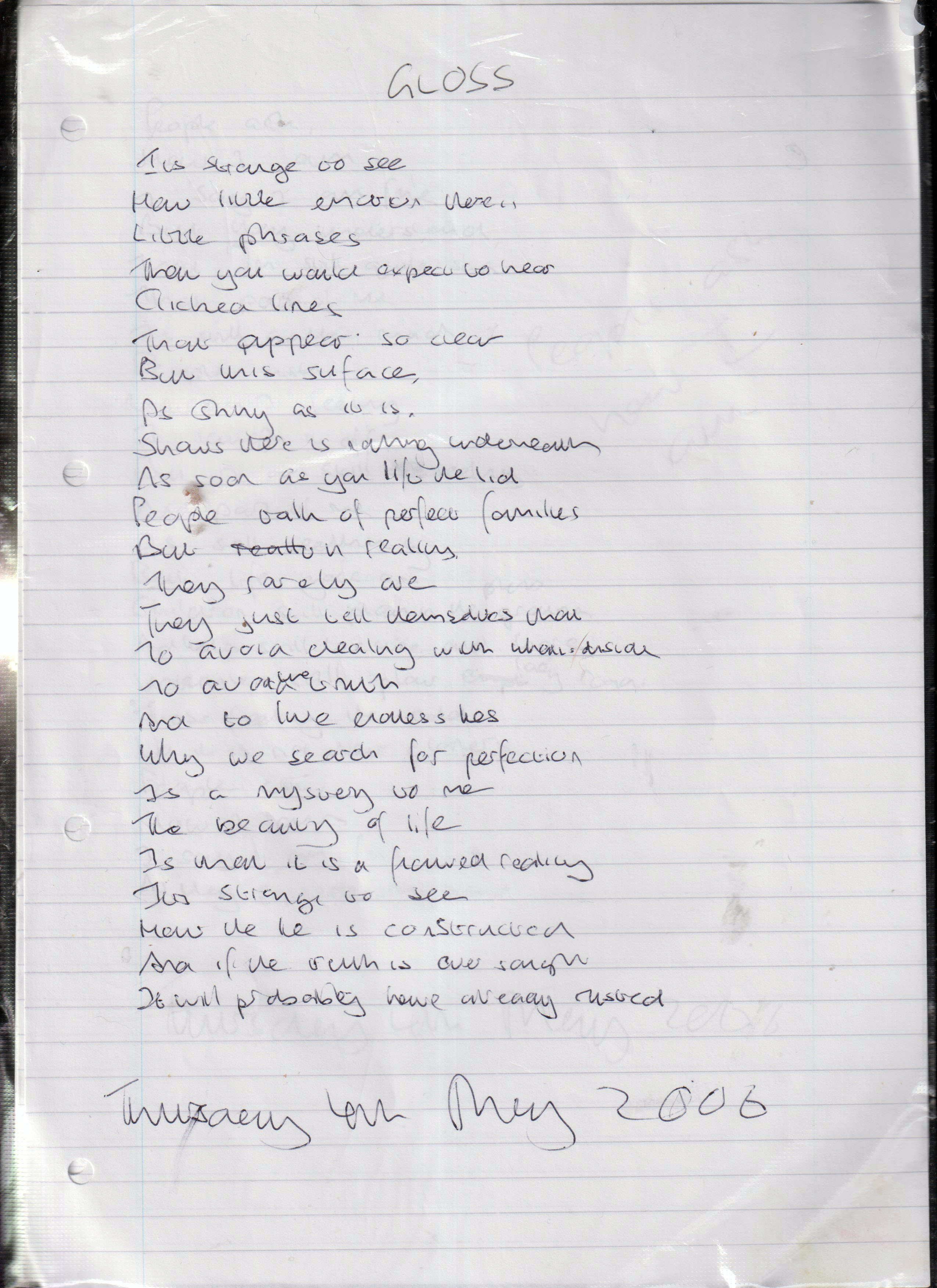 Gloss – Written Thursday 4th May 2006 (Aged 31)
