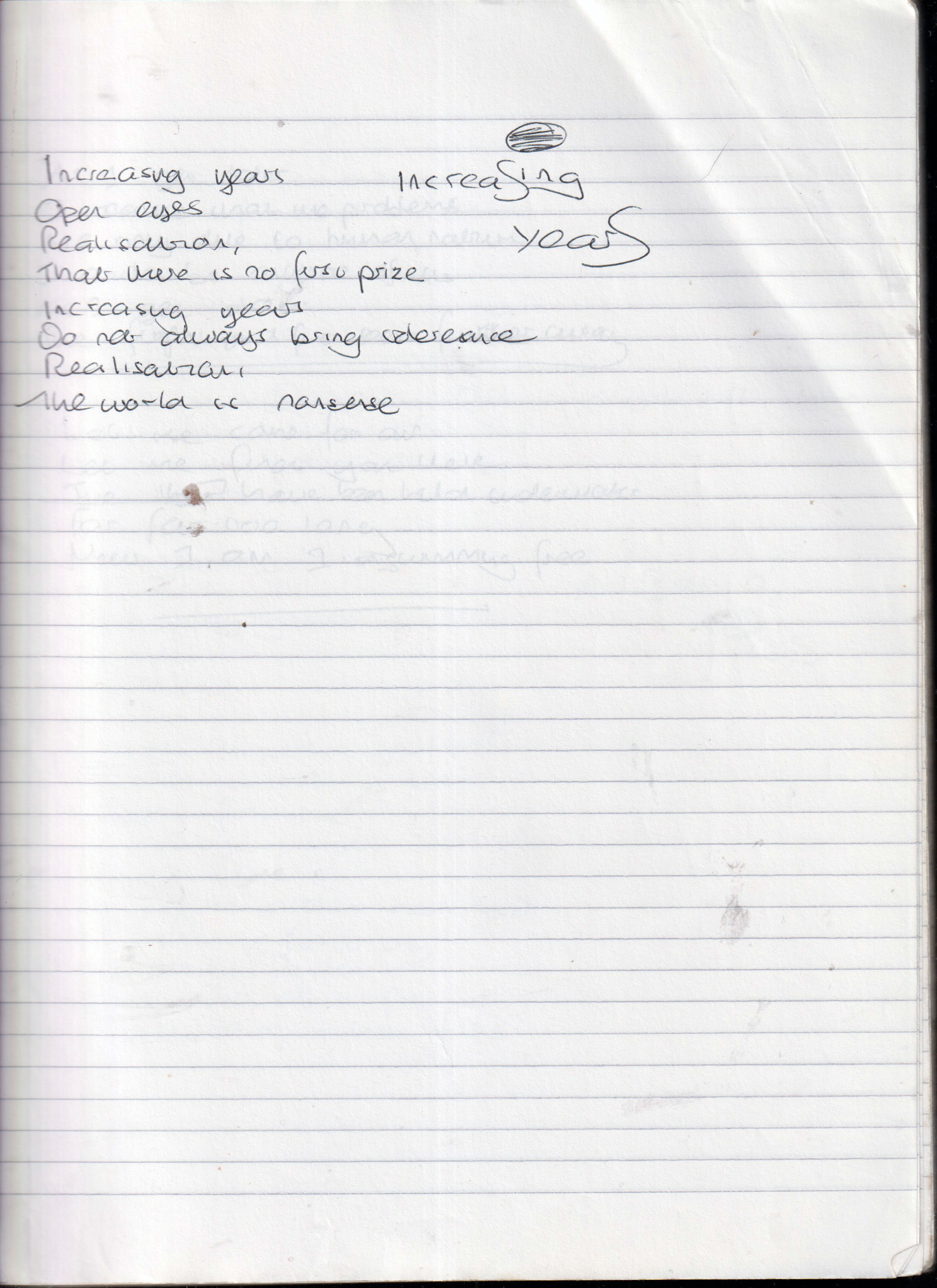 Increasing Years – Written February 2006 (Aged 30)