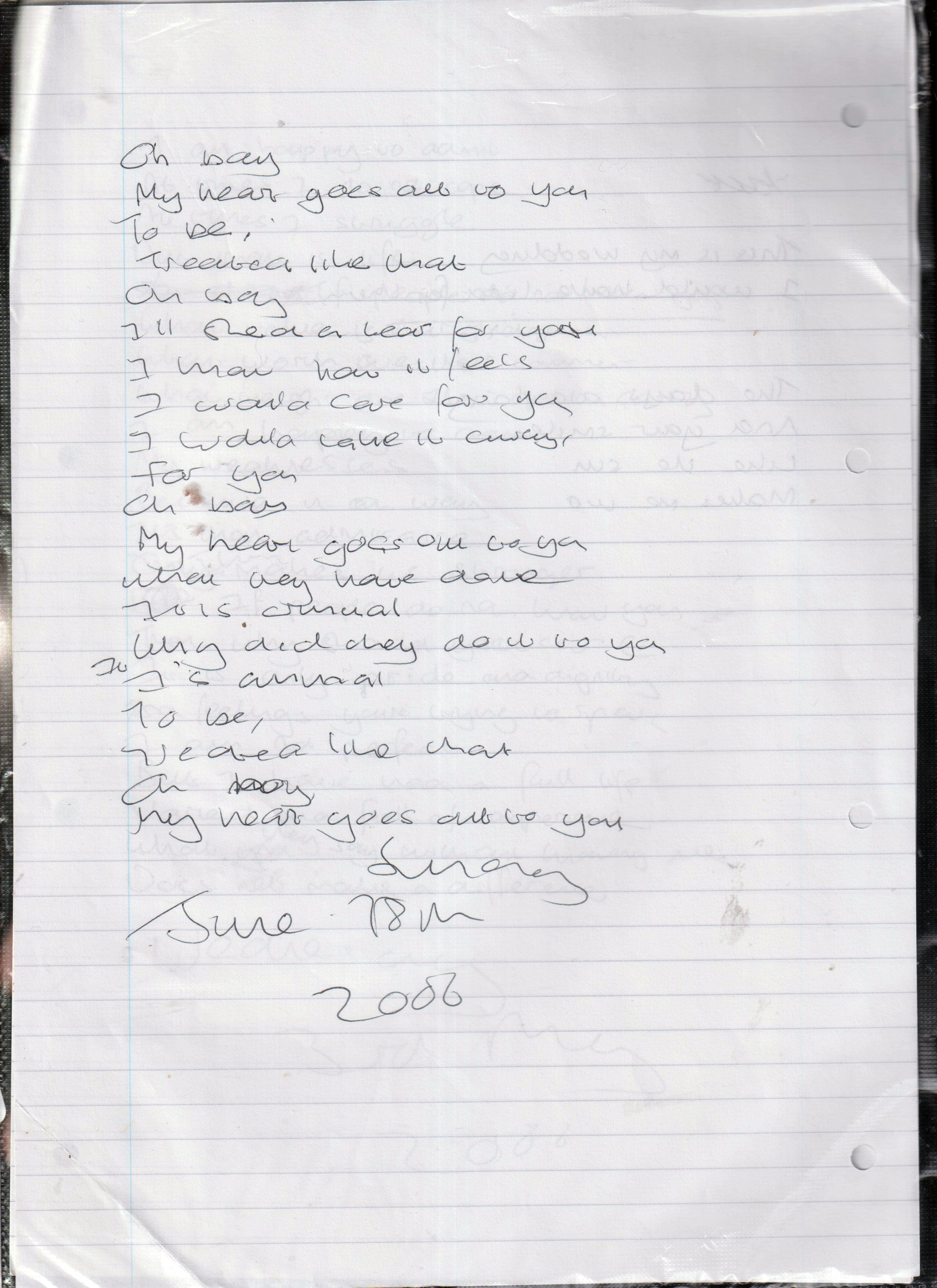 My Heart Goes Out To You – Written Sunday 18th June 2006 (Aged 31)