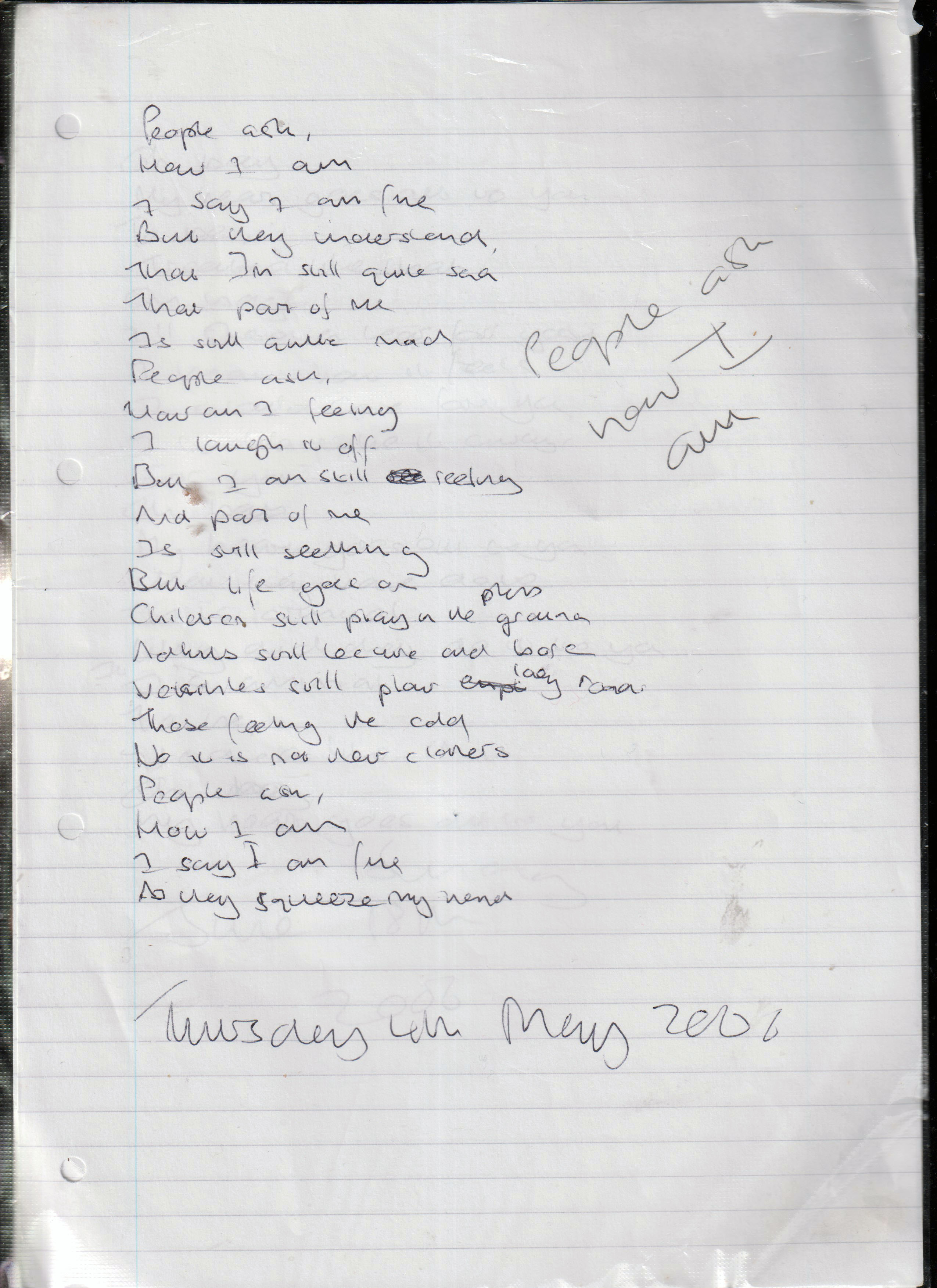 People Ask How I Am – Written Thursday 4th May 2006 (Aged 31)