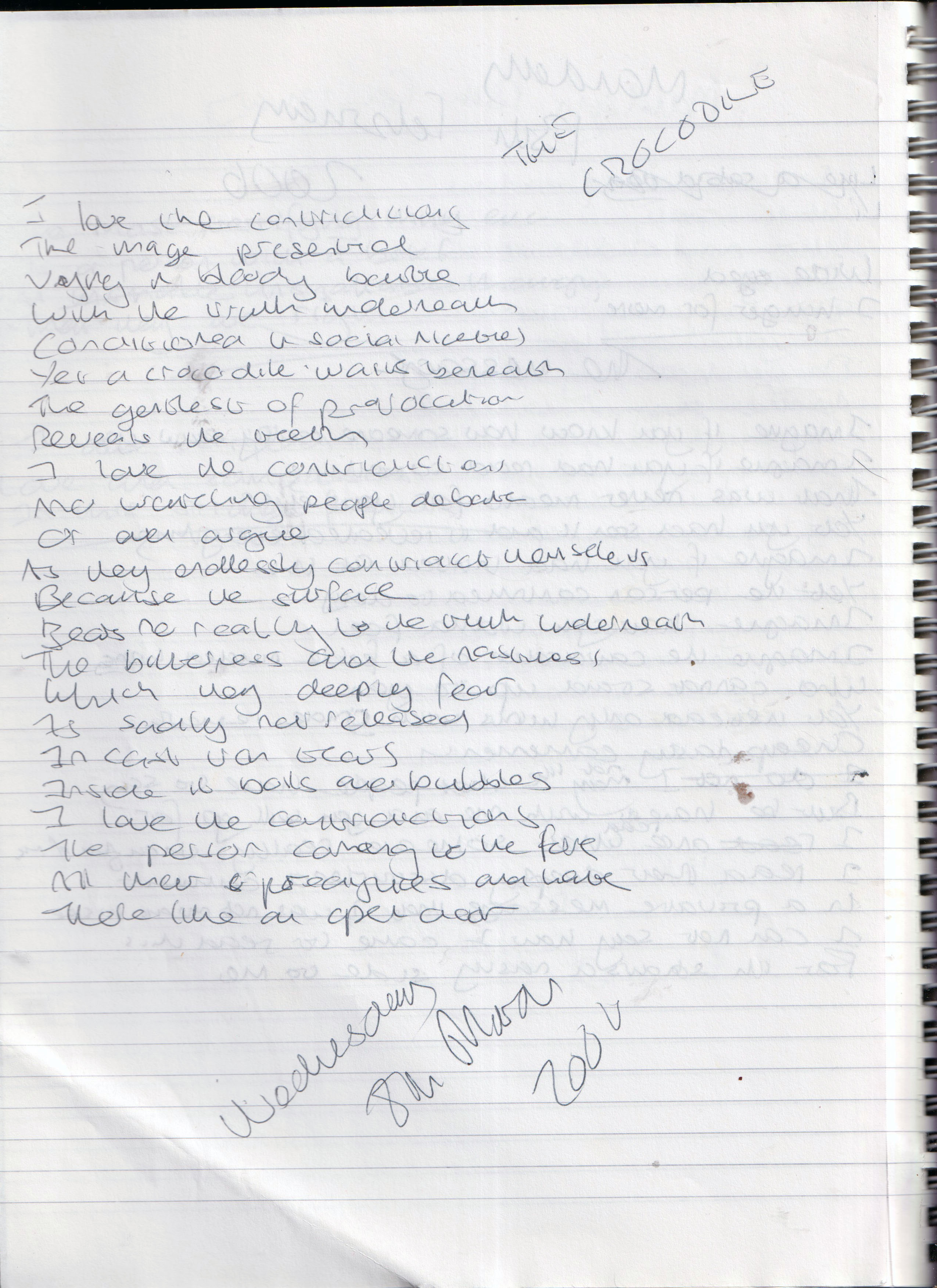The Crocodile – Written Wednesday 8th March 2006 (Aged 31)