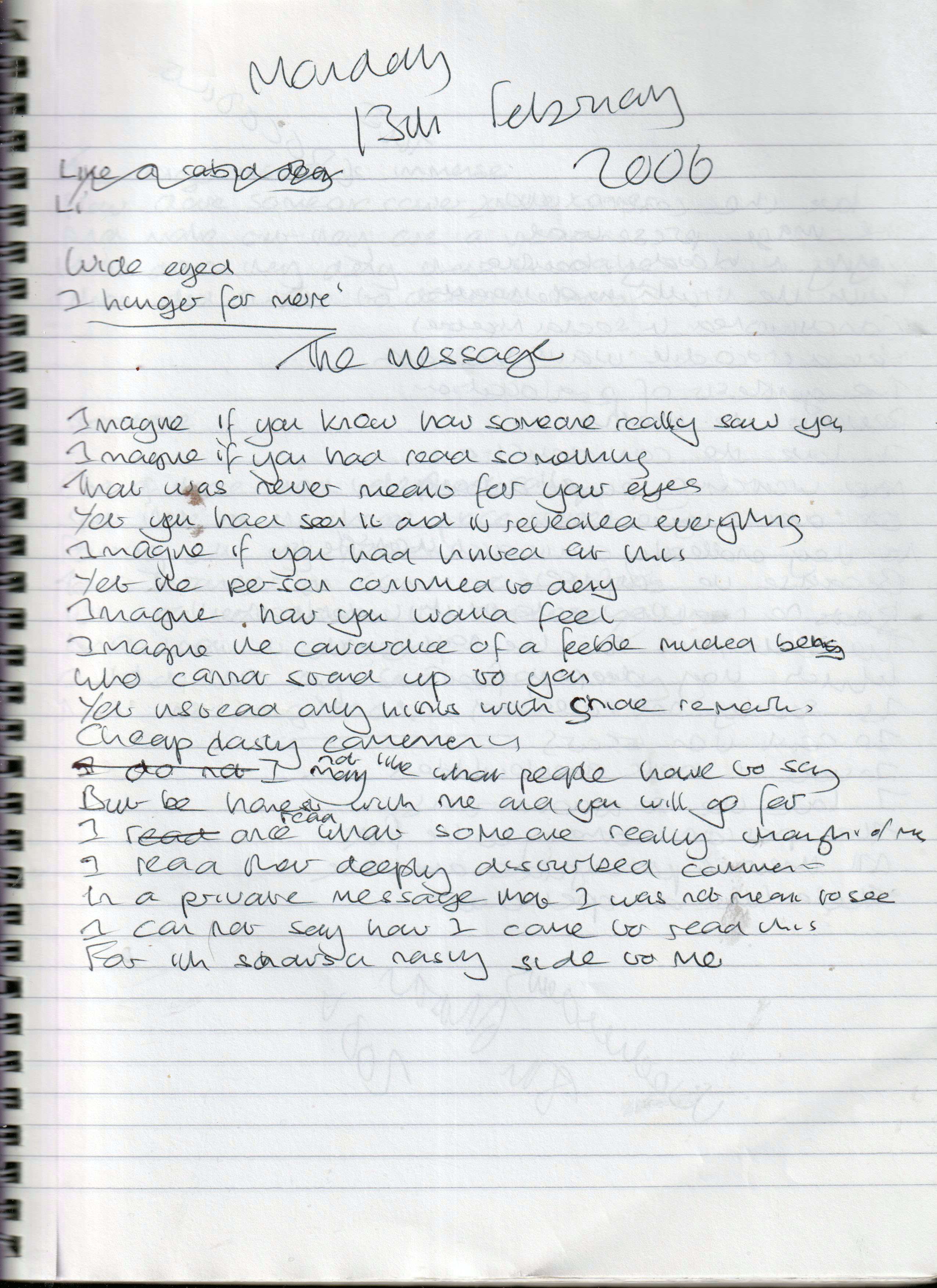 The Message – Written Monday 13th February 2006 (Aged 30)