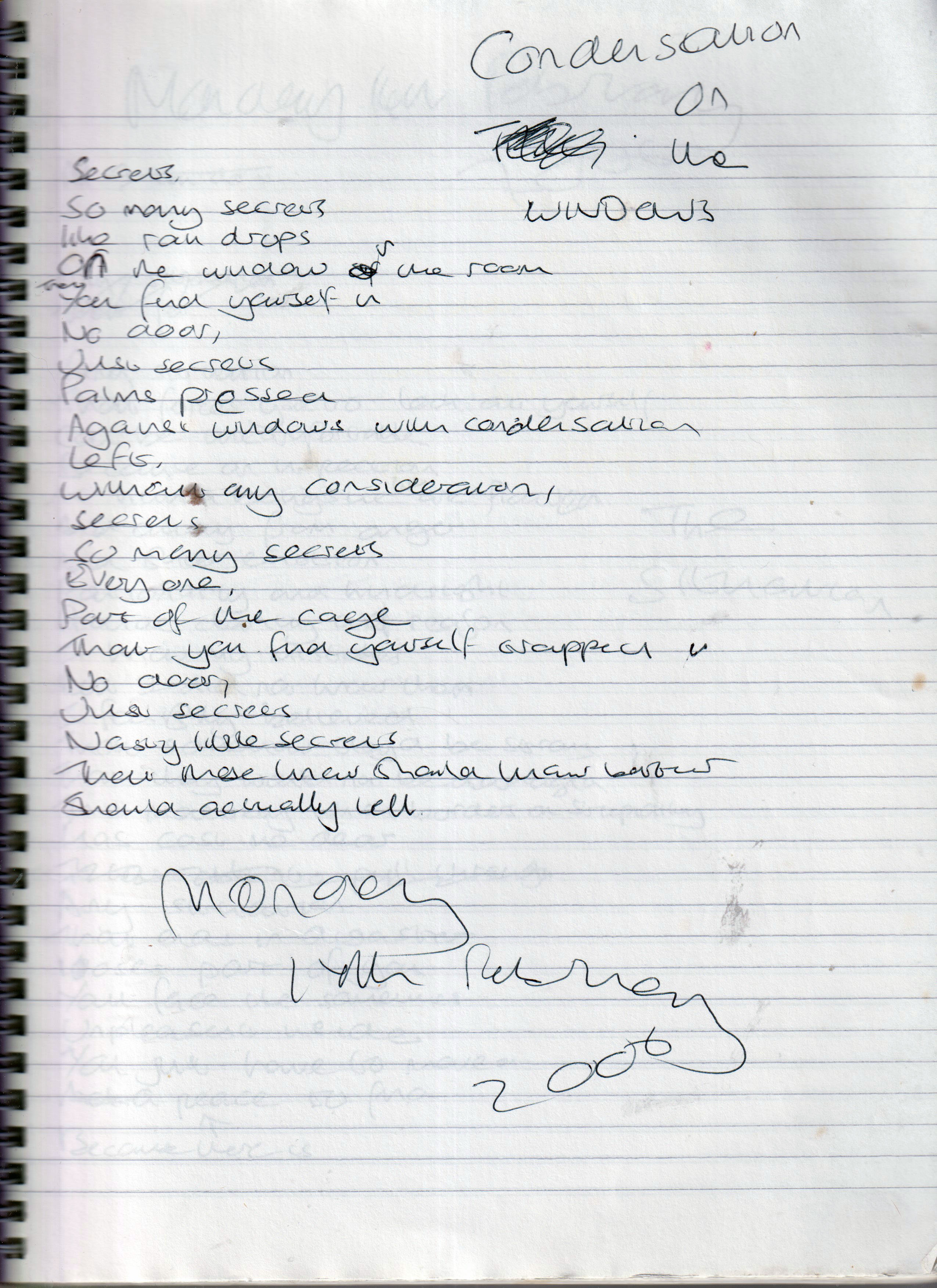 Condensation On The Windows – Written Tuesday 14th February 2006 (Aged 30)