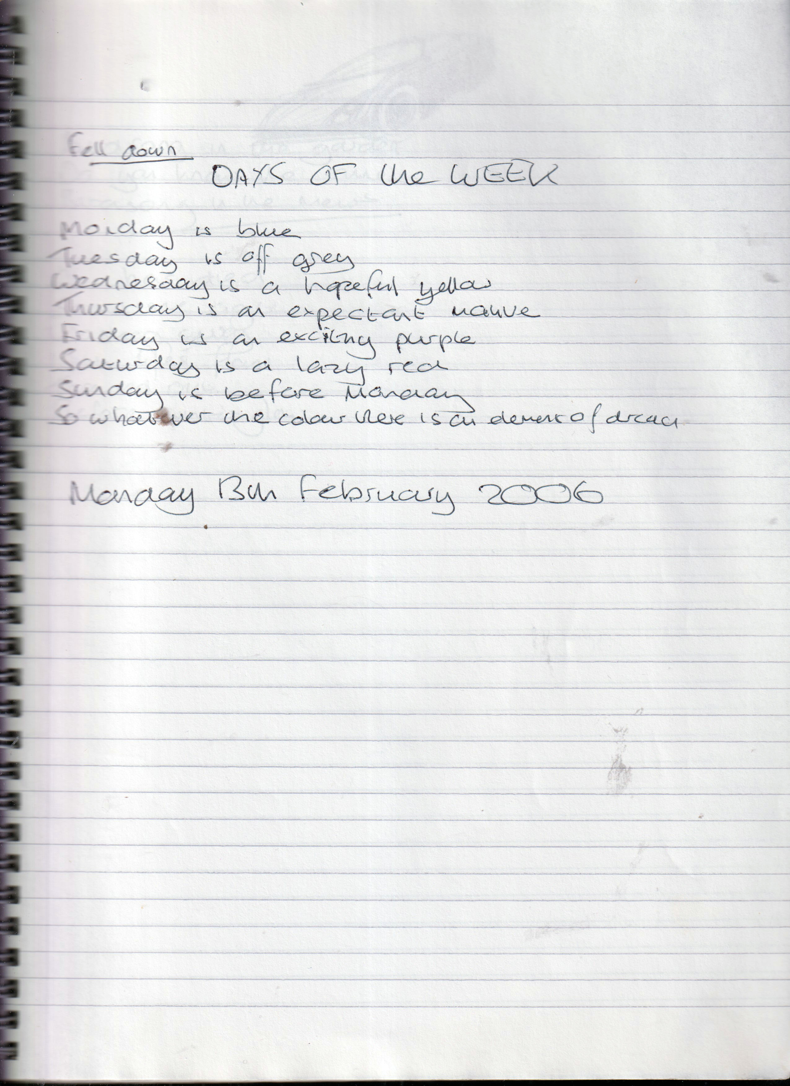 Days Of The Week – Written Monday 13th February 2006 (Aged 30)