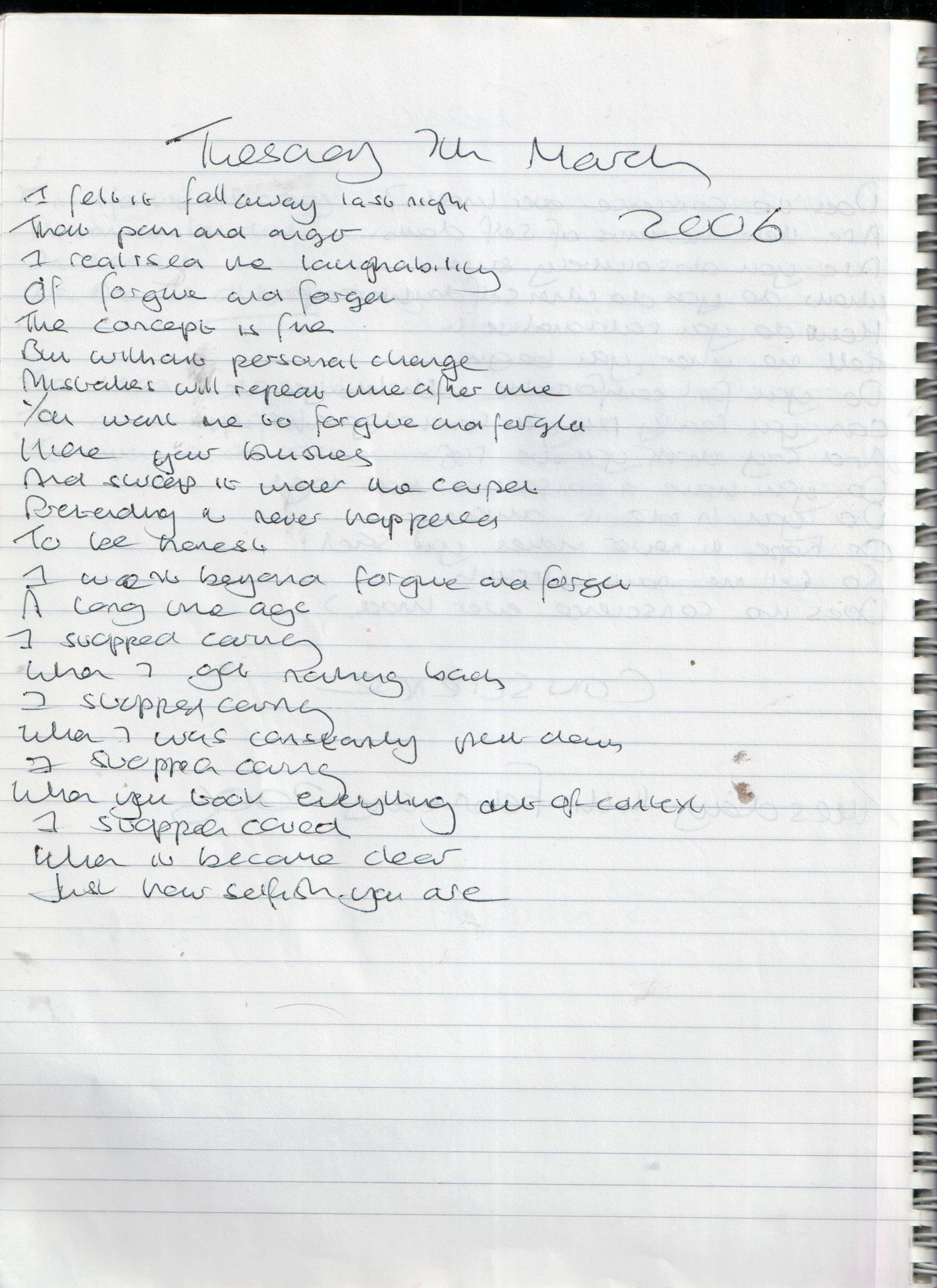 I Stopped Caring – Written Tuesday 7th March 2006 (Aged 31)