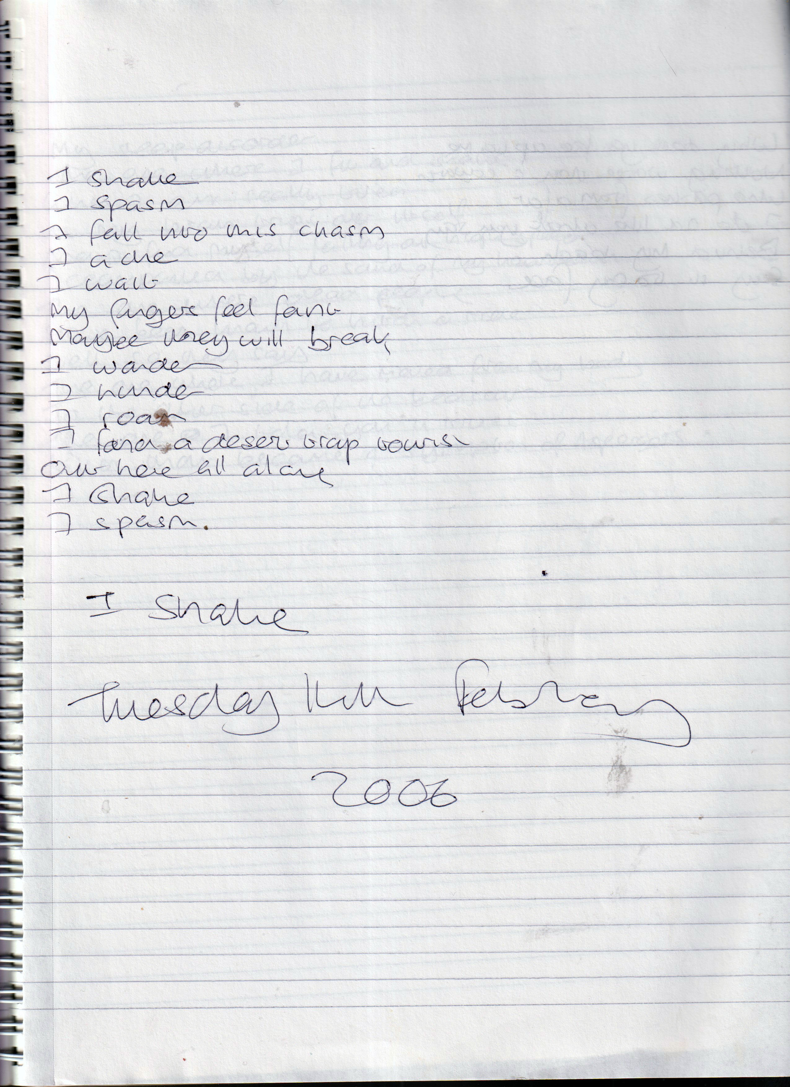 I Shake – Written Tuesday 14th February 2006 (Aged 30)