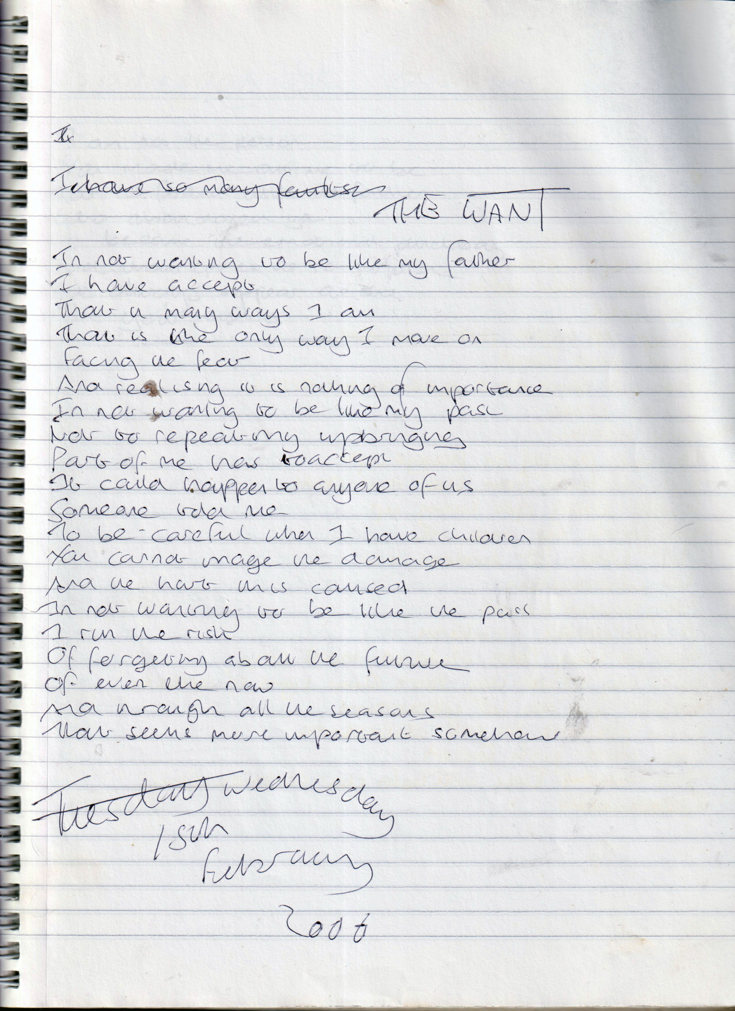 The Want – Written Wednesday 15th February 2006 (Aged 30)