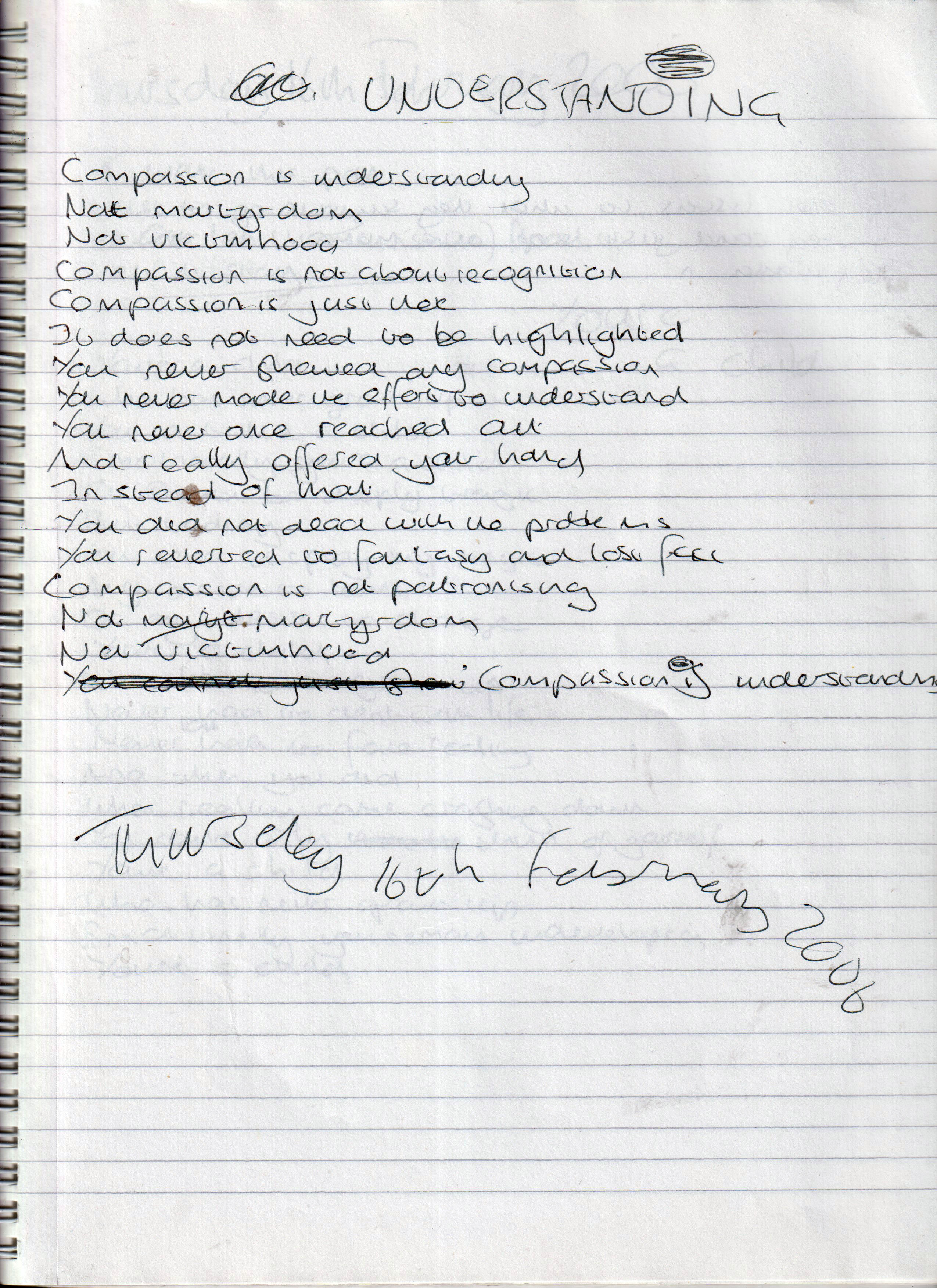 Understanding – Written Thursday 16th February 2006 (Aged 30)
