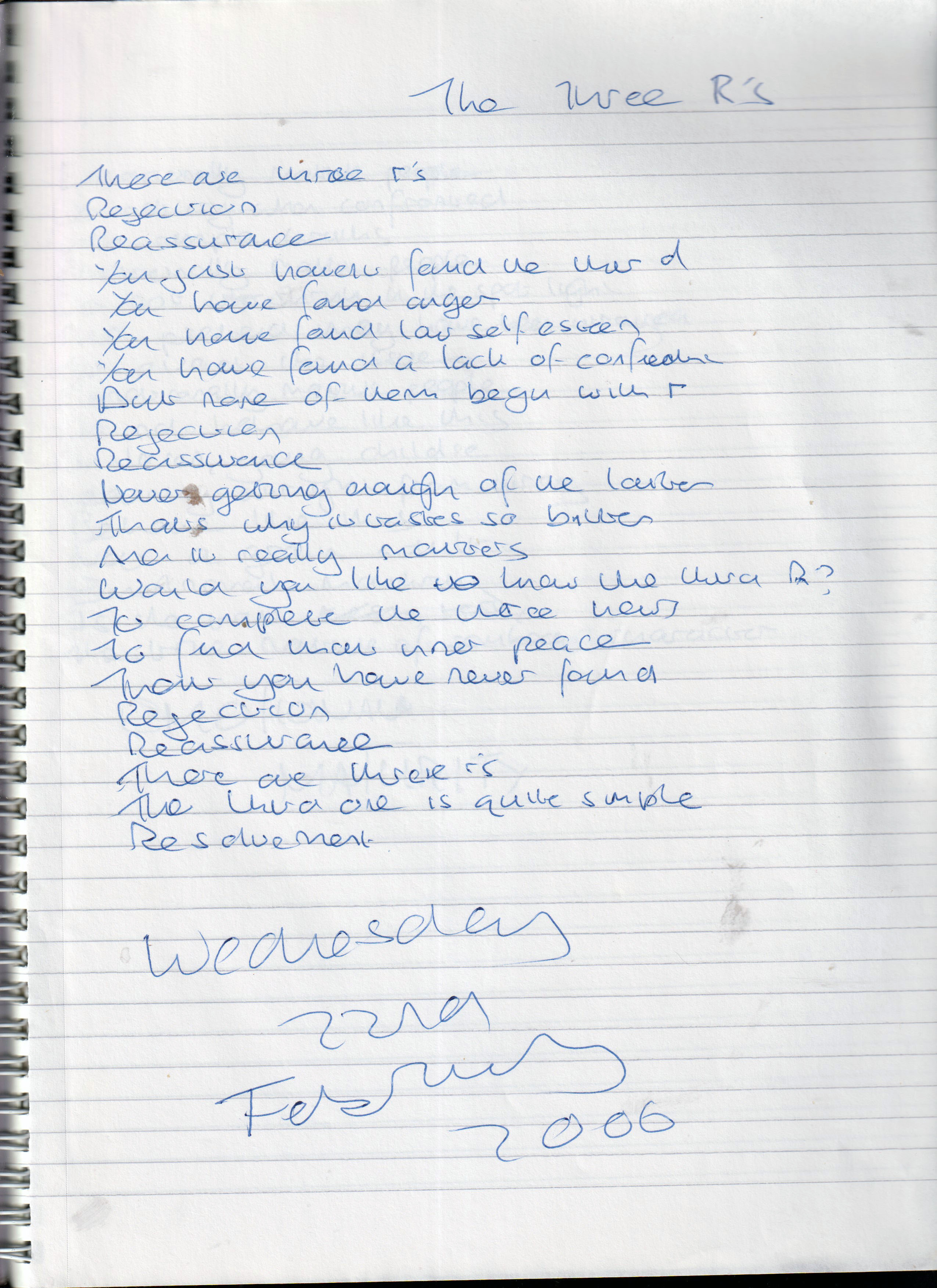 There Are Three R’s – Written Wednesday 22nd February 2006 (Aged 30)