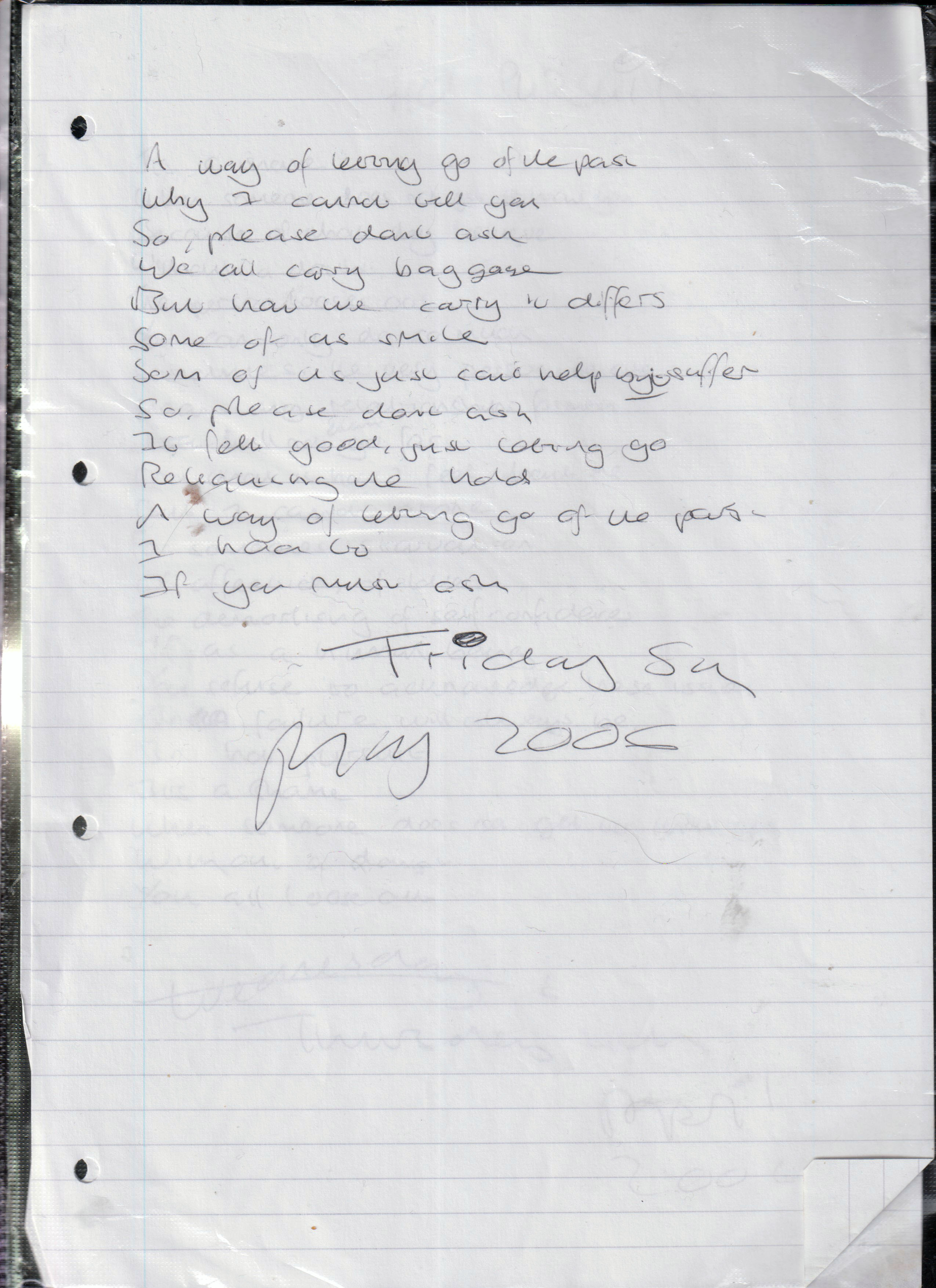 A Way of Letting Go of The Past – Written Friday 5th May 2006 (Aged 31)