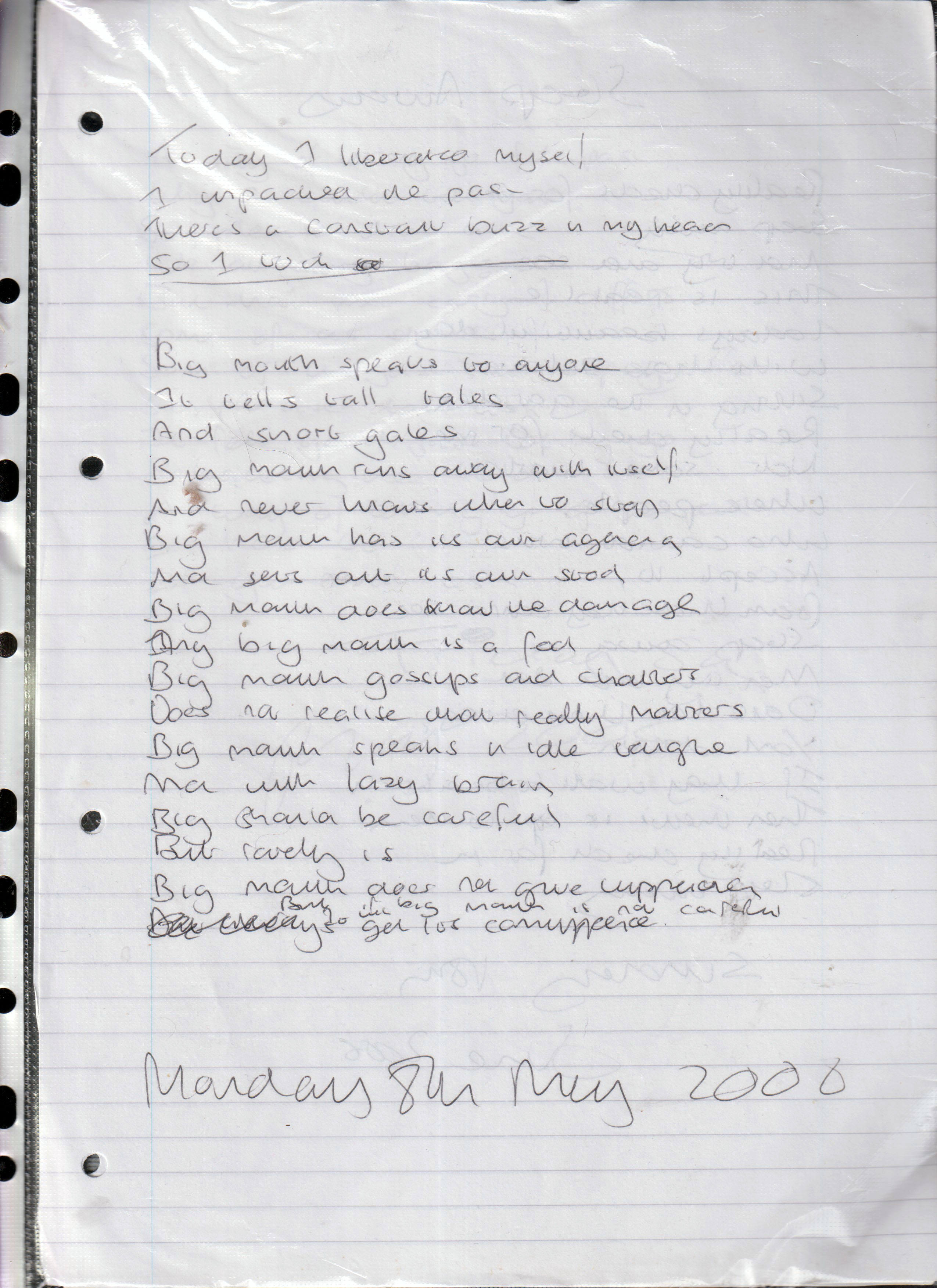 Big Mouth – Written Monday 8th May 2006 (Aged 31)